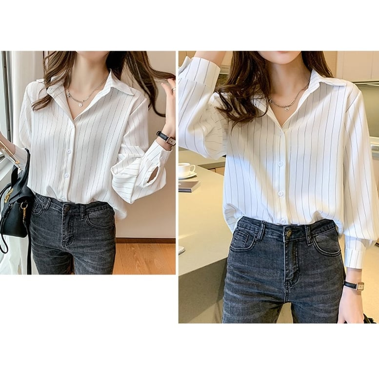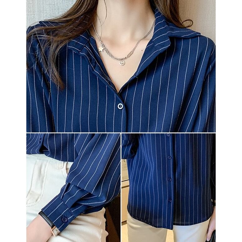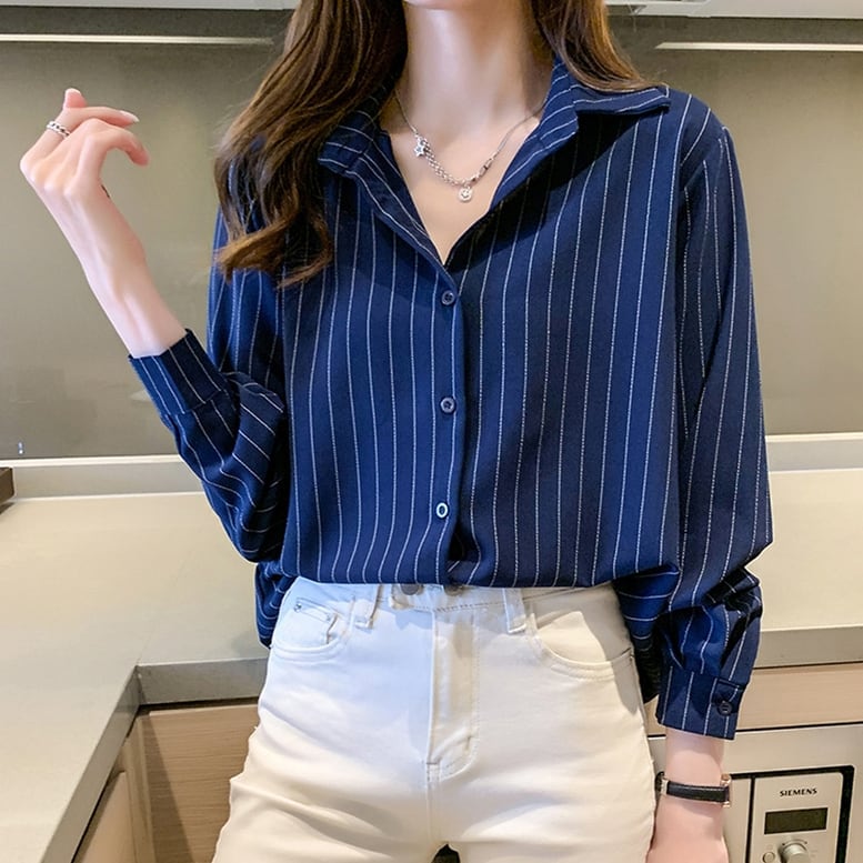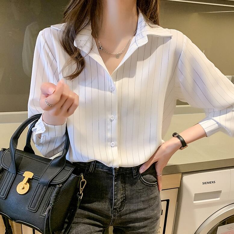 シャツ トップス ストライプベーシックシャツ レディース ストライプシャツ ビジネスシャツ ストライプ柄 襟付き 長袖 ブラウス シフォンシャツ 白 青 ホワイト ブルー シンプル きちんと感 可愛い キレイめ 上品 フェミニン モード トラッド シック 知的 ハンサム マニッシュ カジュアル 春 夏 秋 冬 シーズンレス デイリー おでかけ 仕事 オンオフ兼用 普段着 定番 ベーシック 王道 万能 機能性 スタイルアップ 鮮度アップ 動きやすい 軽やか ゆったり 体型カバー インスタ映え トレンド