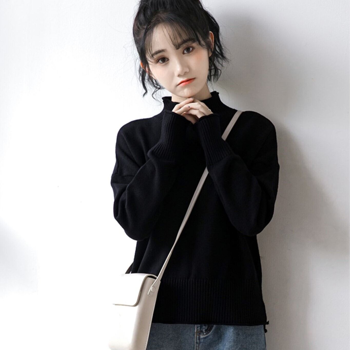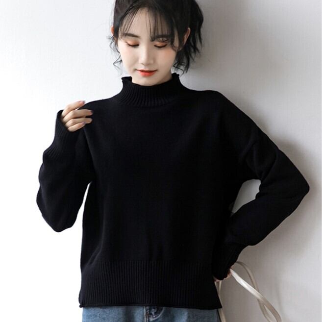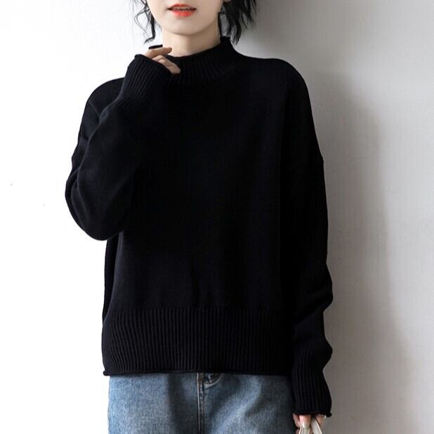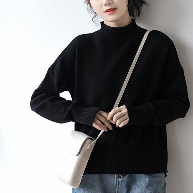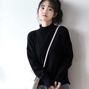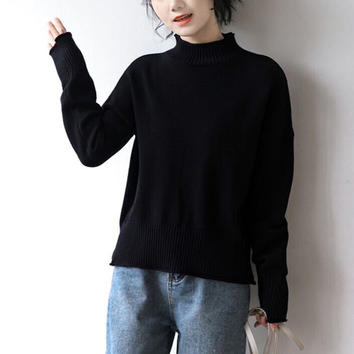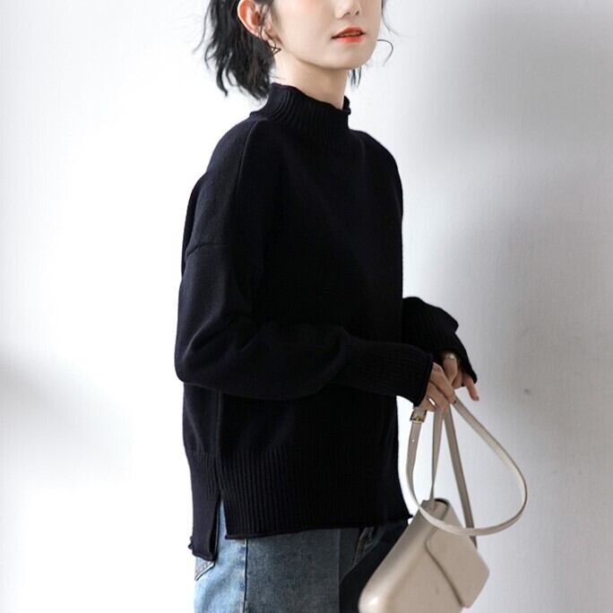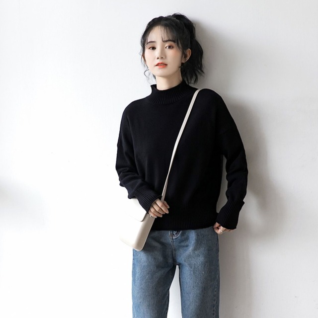 シンプルで様々なボトムスと合わせやすいハイネックセーターです
