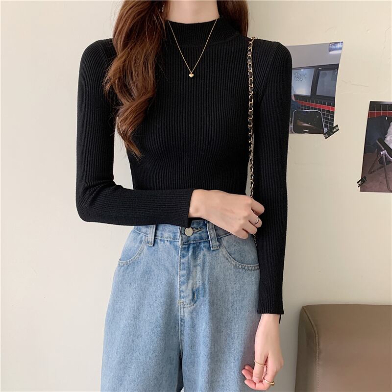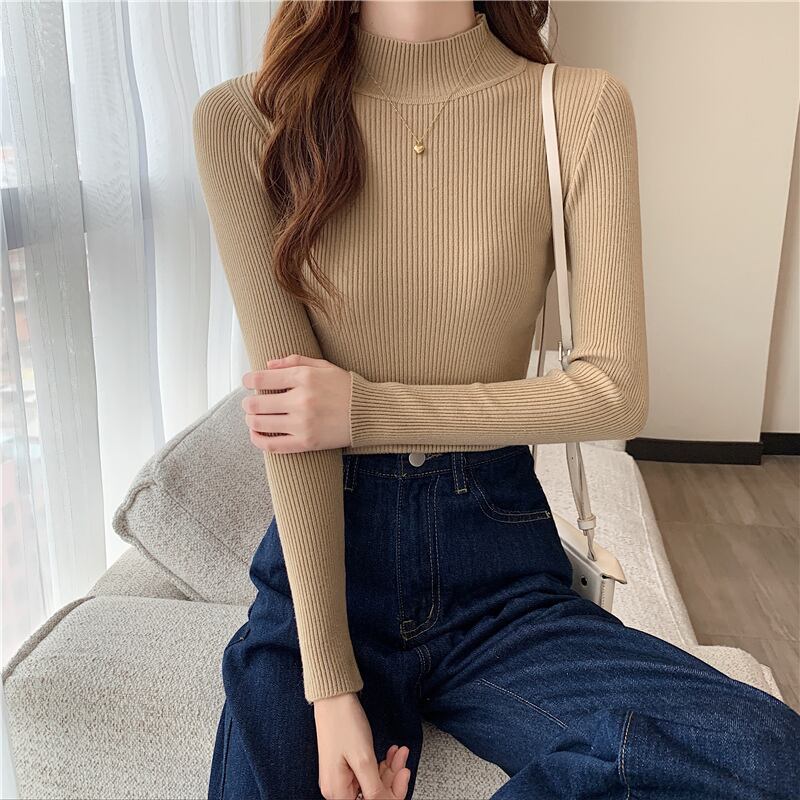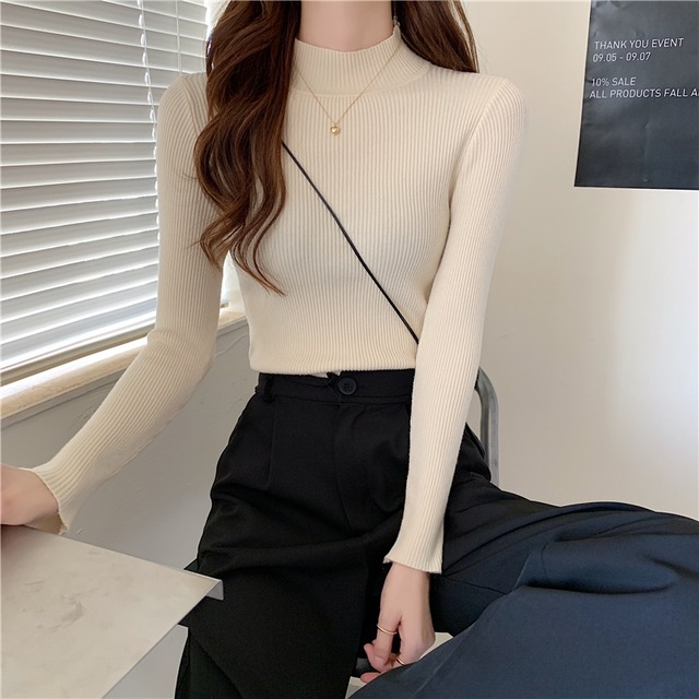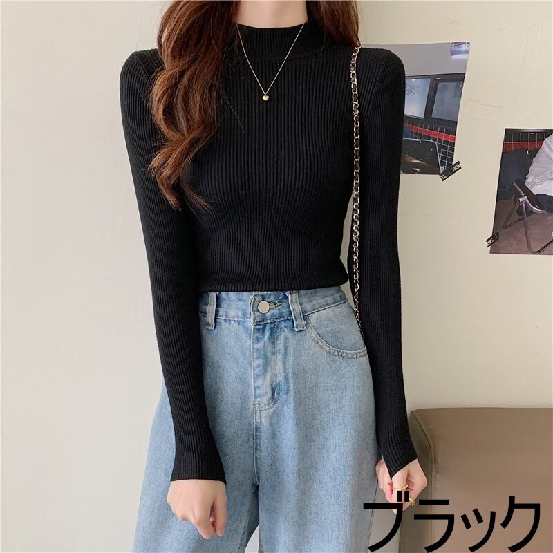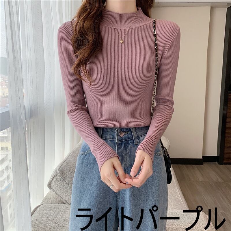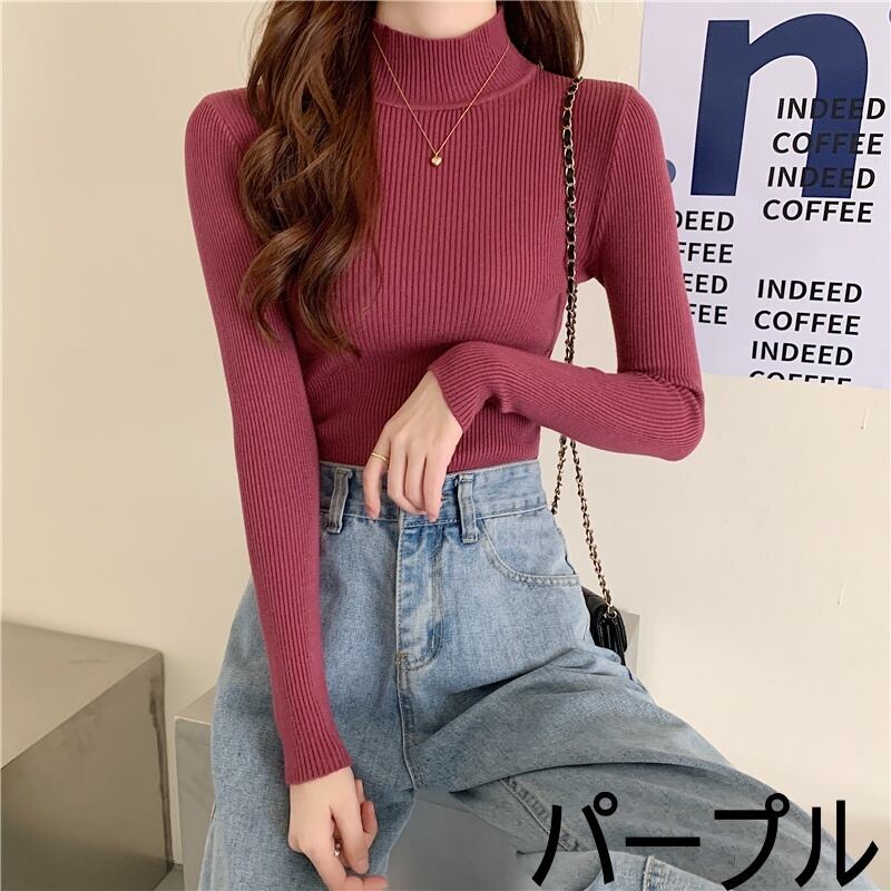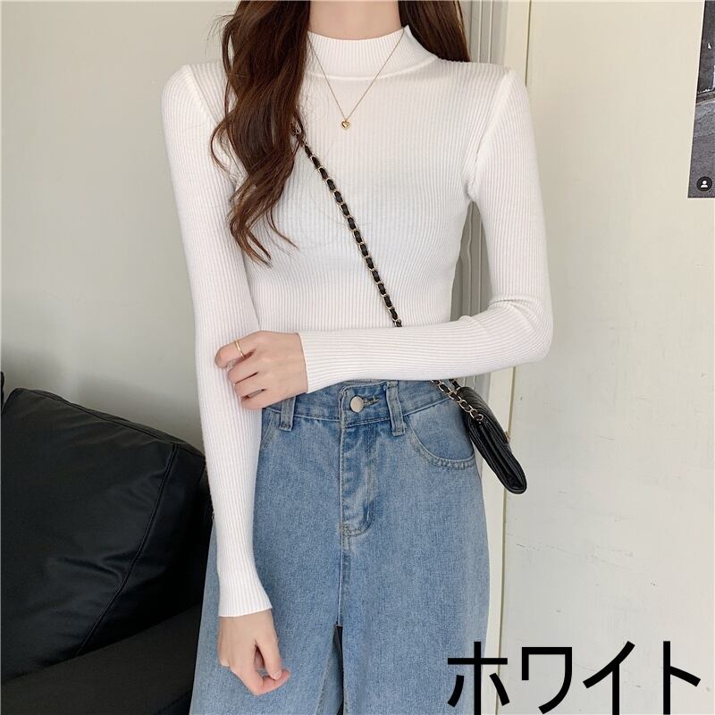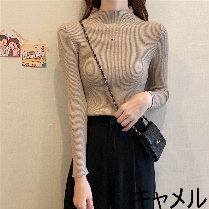 カラーバリエーションの豊富なハーフタートルネックトップスです