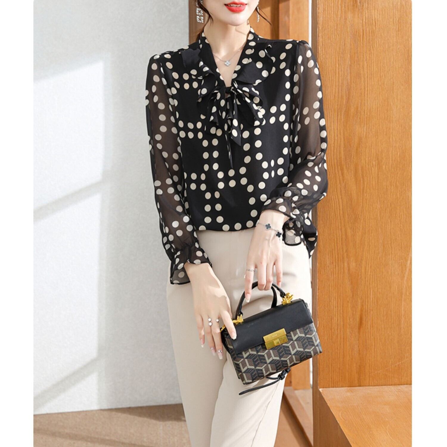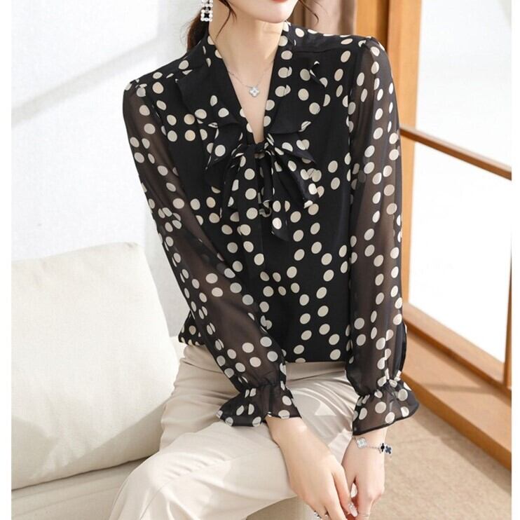 首元リボン サークルパターン ドット柄 ローラル フラワープリント トップス ブラウス 3種類 長袖 キャンディスリーブ 襟なし Vネック フリル かわいい 大人可愛い シンプル きれいめ 上品 おしゃれ お洒落 エレガント フェミニン 存在感 春 秋 水玉パターン 花柄 レディース ママ ミセス 女の子 OL 通勤 学生 通学 デート お出かけ 休日 普段使い お呼ばれ 会食 韓国風 オルチャン XL 2XL 3XL 4XL 5XL 大きいサイズ ぽっちゃり マシュマロ女子 ブラック グレー ベージュ