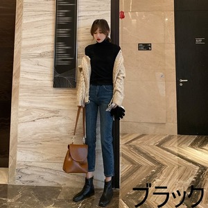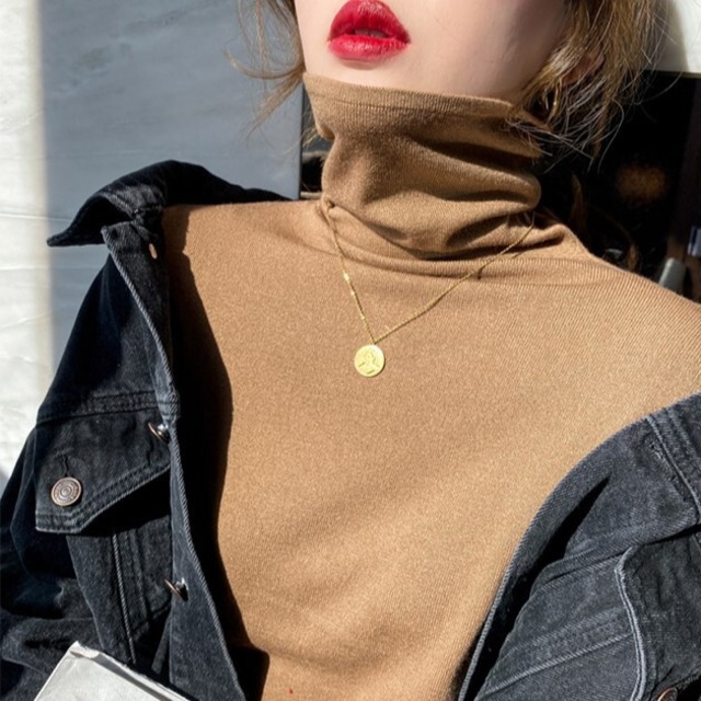 程よい薄手で、着回し力抜群のハイネックの長袖トップスです。