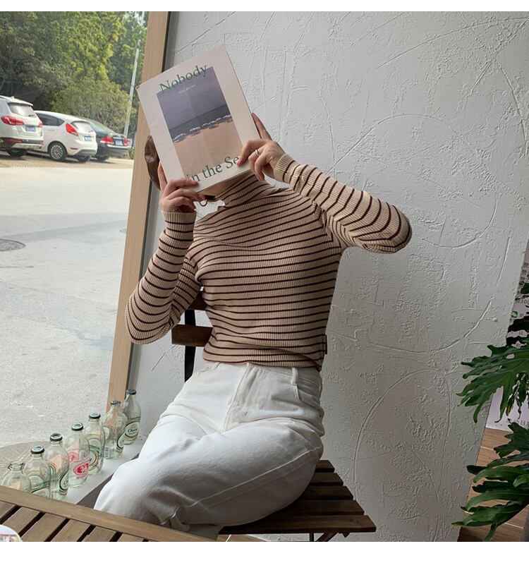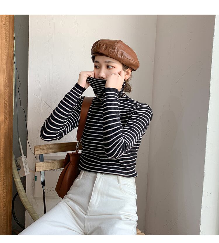 トップス Tシャツ セーター プルオーバー レギュラー丈 長袖 レギュラー袖 タートルネック ハイカラー スリム ウール 厚手 ベルベット 可愛い シンプル カジュアル お洒落 ラフ 抜け感 ストライプ 春 秋 誕生日 10代 20代 30代 女性用 ママ OL 学生 通学 デート 公園デビュー お泊まり 休日 アウトドア イベント 旅行 ホテル レストラン ショッピング オールマッチ 普段使い 韓国系 コーデ スタイル 暖かい ギフト 安い フリーサイズ ダークコーヒー コーヒー 黒 白 グレー