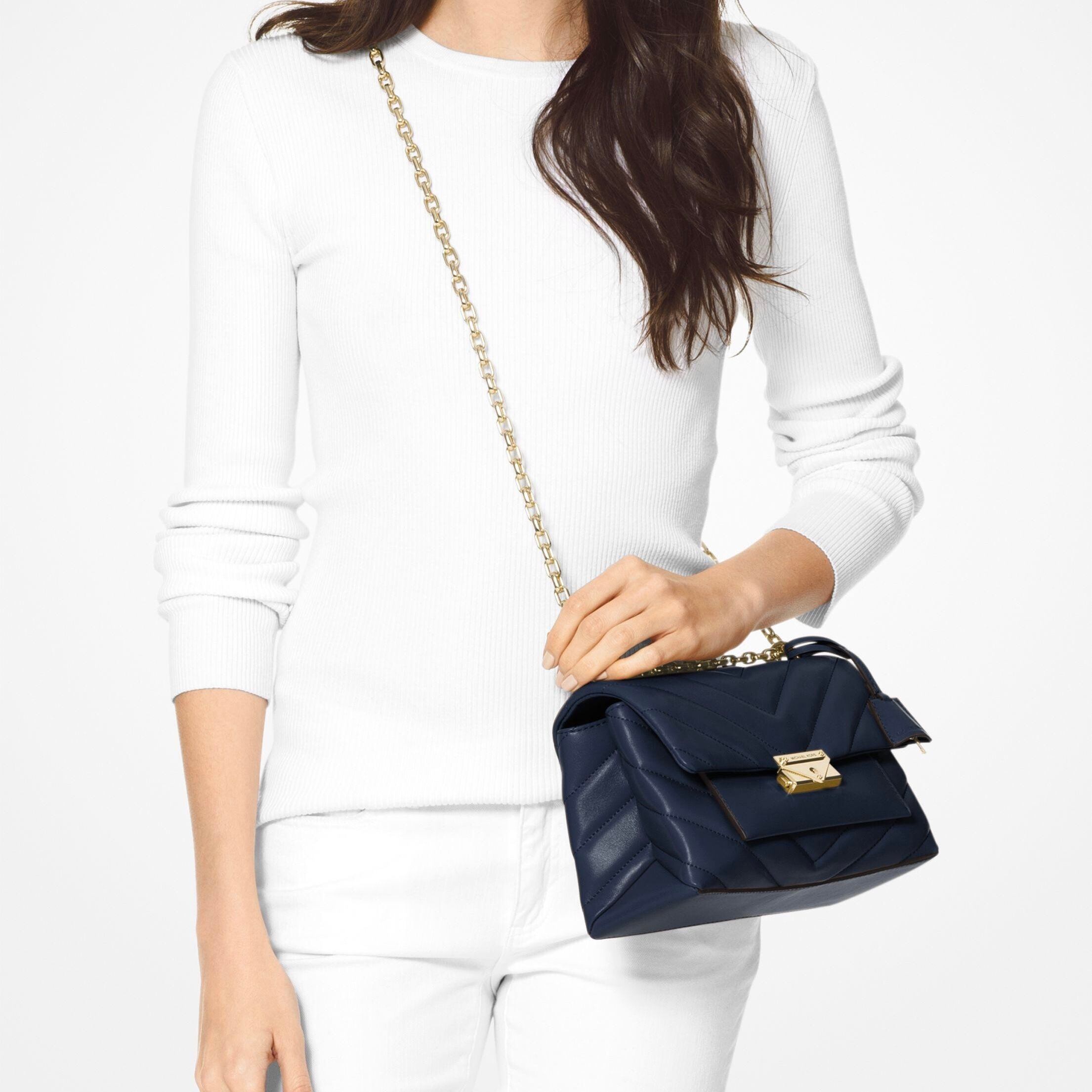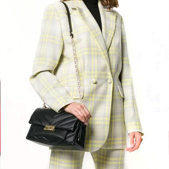 MICHAEL KORSのショルダーバッグが、ブラックとブルーの魅力的なカラーコンビネーションで登場。