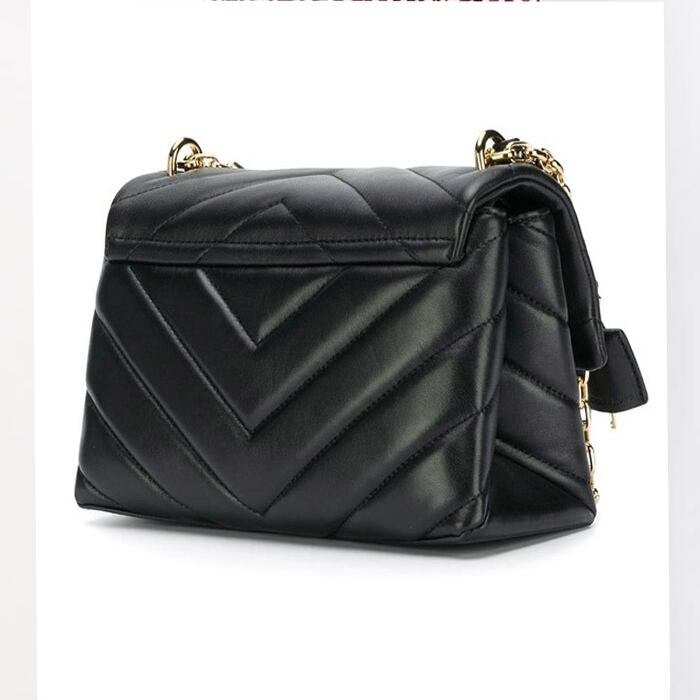 ブラックとブルーのコントラストが、上品でエレガントな印象を与えるショルダーバッグ。あなたのファッションに華やかさをプラスします。
