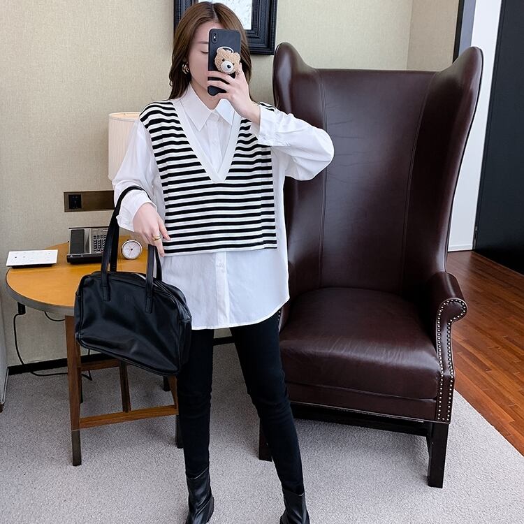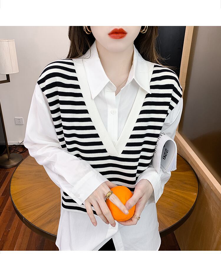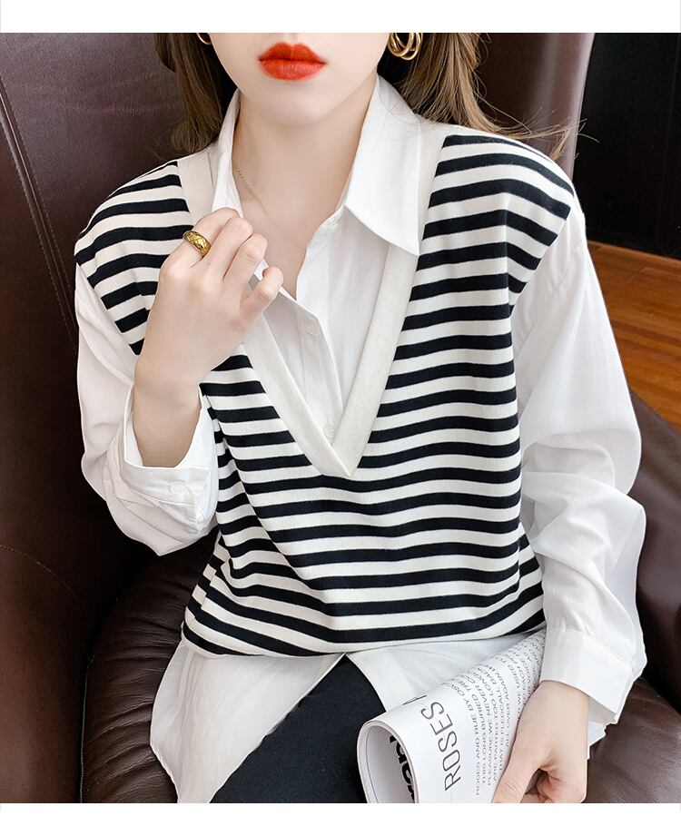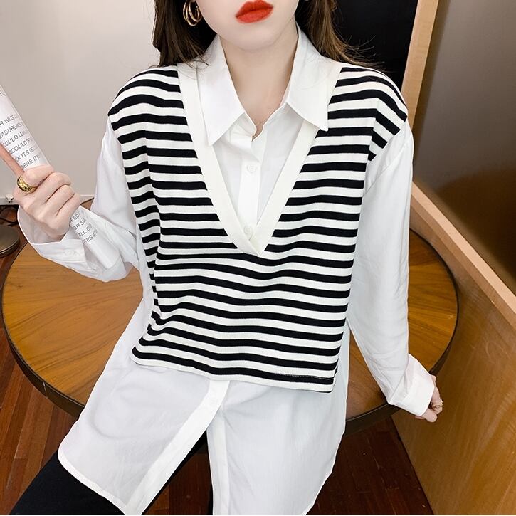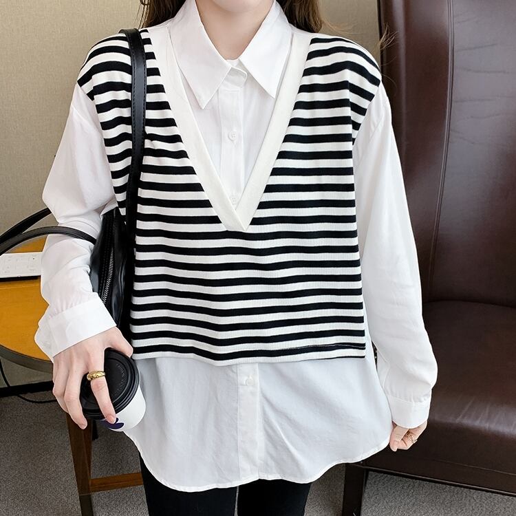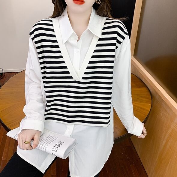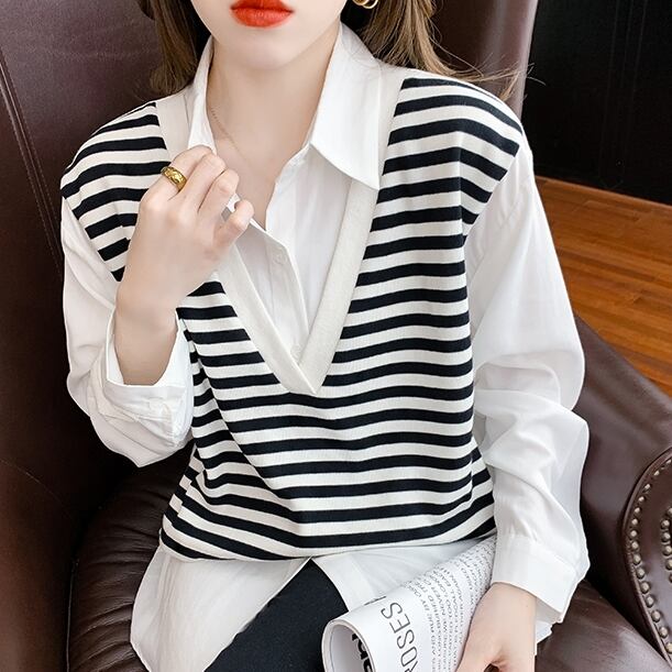 ブラウス トップス レディース シャツ レギュラーカラー ベスト フェイクレイヤード Vネック 長袖 ボーダー オシャレ シンプル きちんと感 可愛い キレイめ 上品 フェミニン ちょい甘 マニッシュ カジュアル 春 夏 秋 冬 デイリー おでかけ 仕事 オンオフ兼用 普段着 スマート 細見え スタイルアップ 高見え 新鮮 上級者 主役級 鮮度アップ 軽やか ゆったり 体型カバー インスタ映え トレンド 同系色 エレガント ガーリー キュート レトロ S M L XL 2XL ブラック カーキ