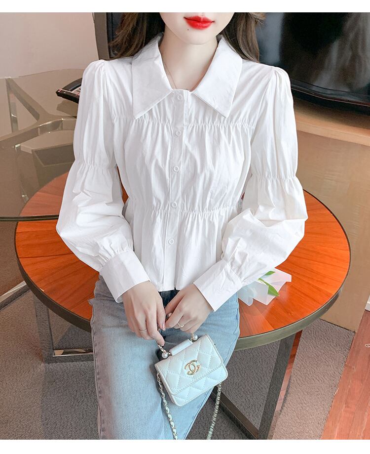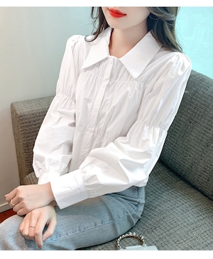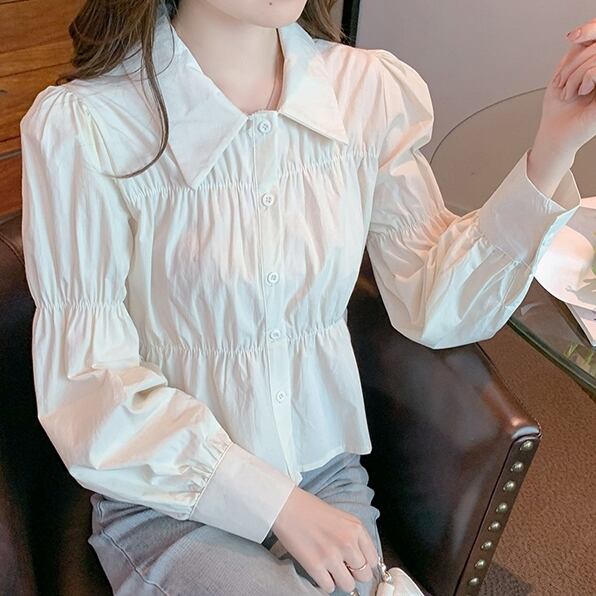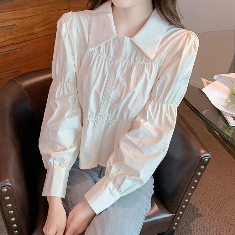 トップス シャツ ブラウス 白トップス 袖あり 長袖 レギュラーカラー ショート丈 ギャザー 襟なし 前開き 薄手 かわいい 大人可愛い 甘め きれいめ シンプル カジュアル 大人 上品 お洒落 大人女子 こなれ感 ガーリー フェミニン エレガント 主役級 抜け感 無地 春 秋 冬 20代 30代 40代 ママ 通勤 通学 デート お出かけ 女子会 休日 旅行 着回し 普段使い 重ね着 韓国系 オルチャン モテ 体型カバー 定番 トレンド 流行 インスタ映え S M L XL 2XL ホワイト