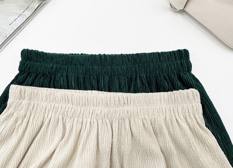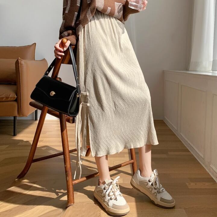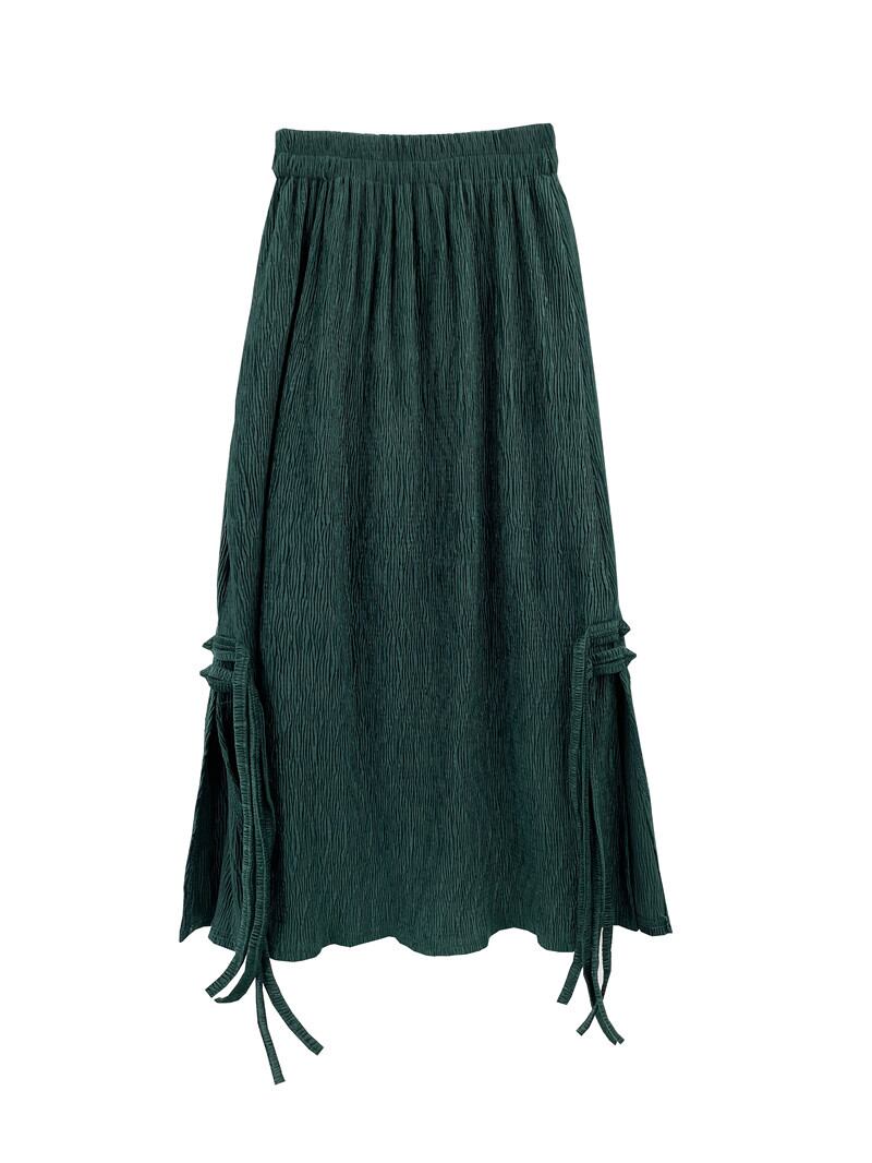 クシュッとした伸縮性のある生地がこなれたカジュアルな雰囲気で着用できるスカート。