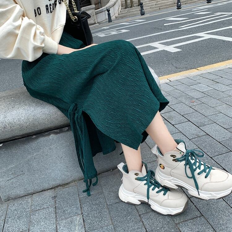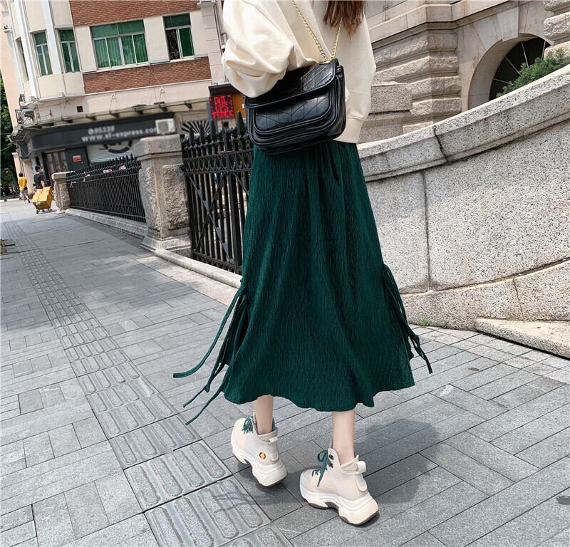 スカート デート フレア ミモレ丈 かわいい リボン レースアップ メロウ ウエストゴム 大人可愛い きれいめ シンプル カジュアル 大人 上品 おしゃれ お洒落 主役級 存在感 春 秋 10代 20代 30代 レディース 女性用 OL 学生 デート お出かけ 公園デビュー 女子会 休日 イベント 旅行 着回し 普段使い ファッション コーデ 楽ちん モテ トレンド 流行 インスタ映え ゆったり ゆる 白 アプリコット グリーン黒 ブラック