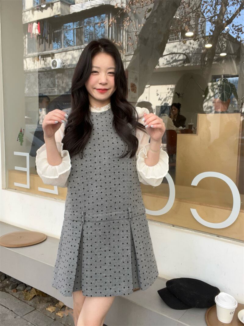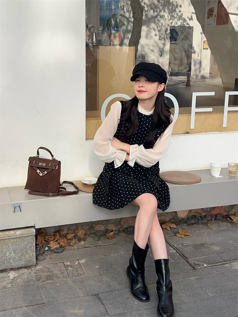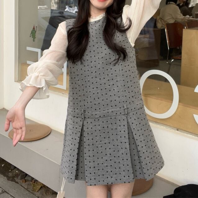 ワンピース レディース ミニ丈 ショート丈 ボックスプリーツ ドット 水玉 ドレス ラウンドネック ノースリーブ ベルトループ付き ショート丈 無地 オシャレ シンプル きちんと感 可愛い キレイめ 上品 カジュアル 春 秋 冬 デイリー おでかけ アウトドア 普段着 スマート 細見え スタイルアップ 高見え 新鮮 上級者 主役級 鮮度アップ 美脚見え 動きやすい 軽やか オーバーサイズ ゆったり 体型カバー トレンド ブラック グレー