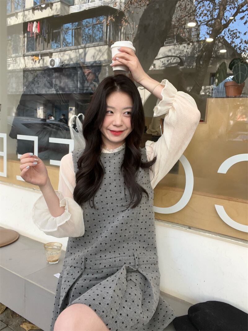 レトロなプチドット柄でストンと落ちるシルエットがこなれたデザイン。