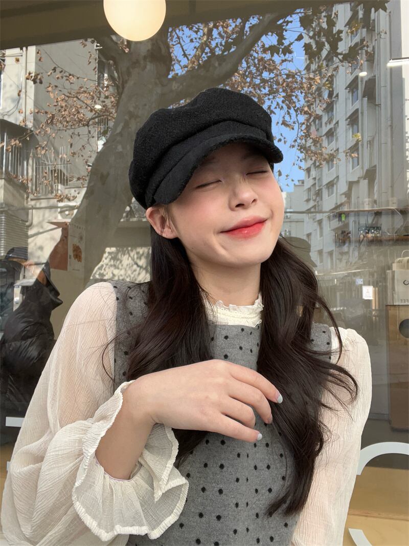 ゆるい風合いだからこそミニ丈でもシックな雰囲気をまといます。