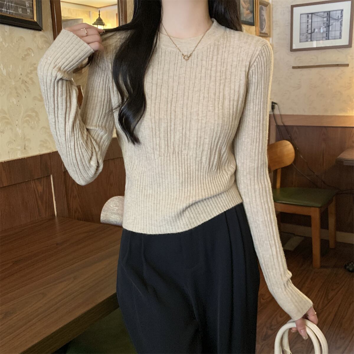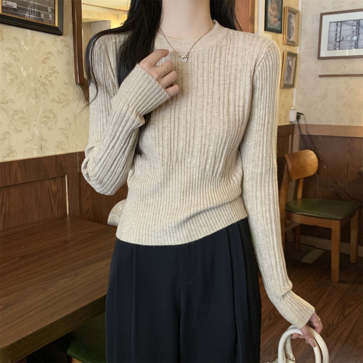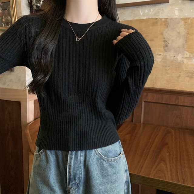 様々な服に合わせやすいカラー展開のクルーネックニットトップスです