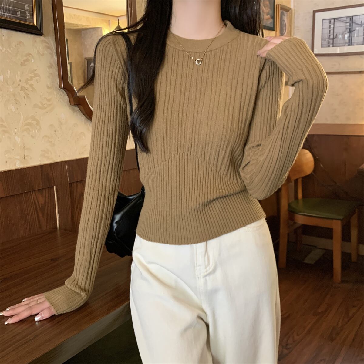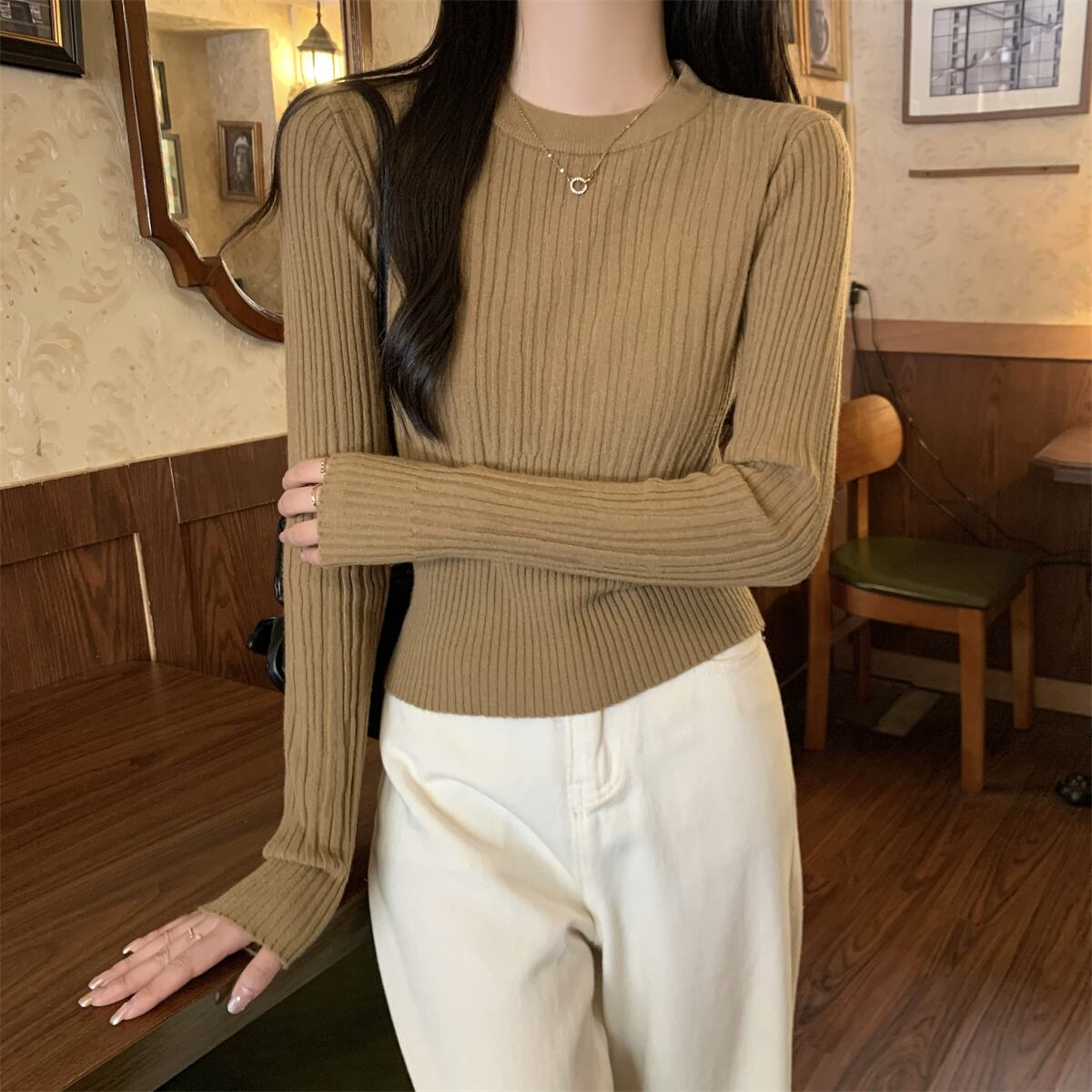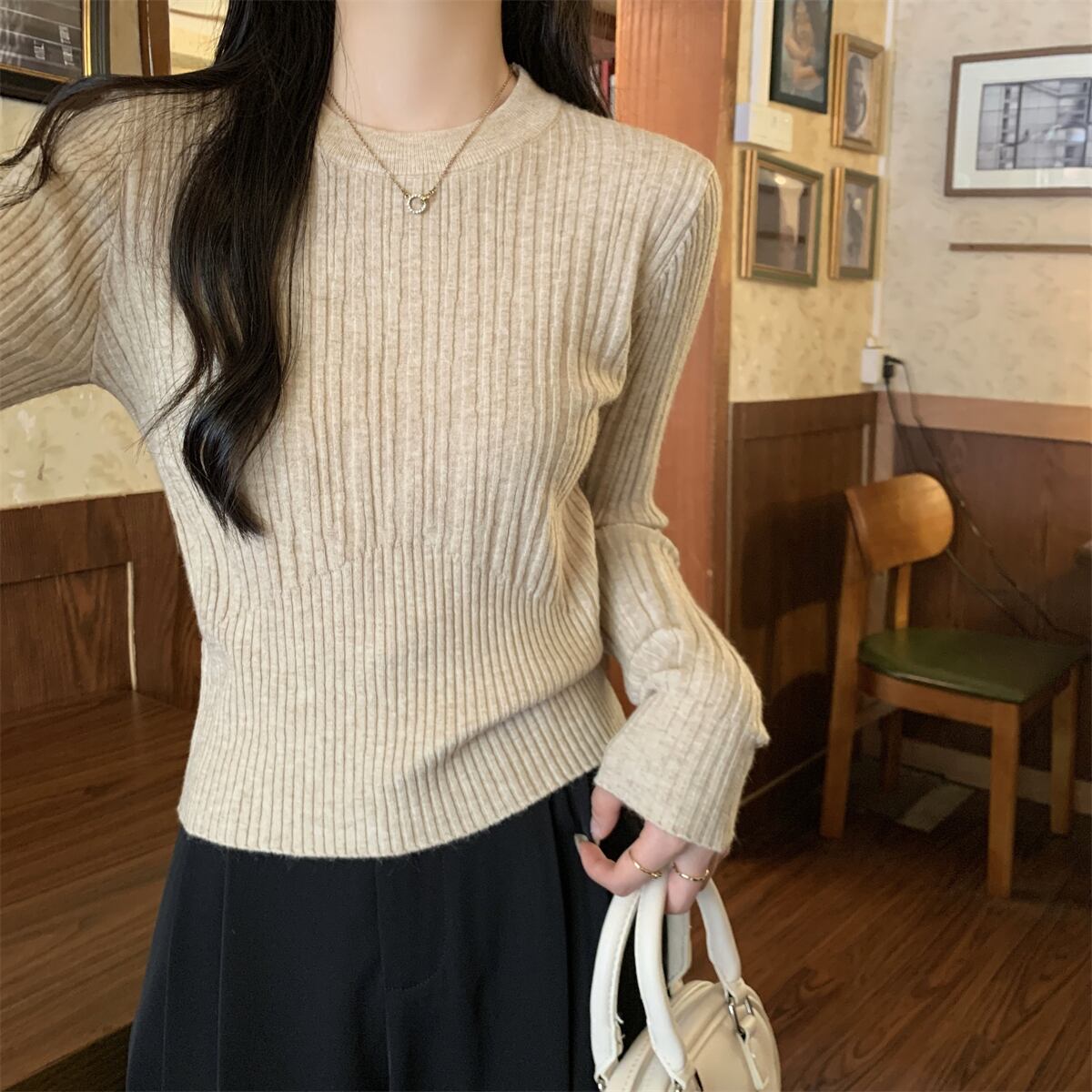 様々な服に合わせやすいカラー展開のクルーネックニットトップスです