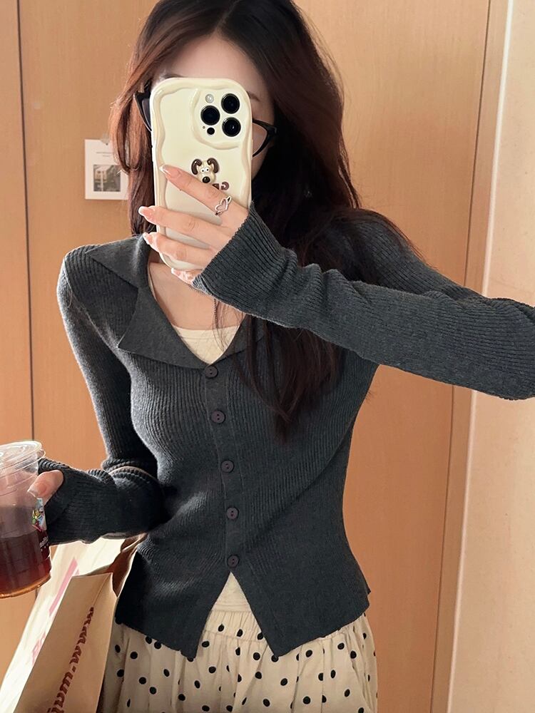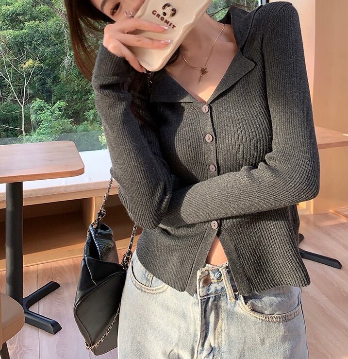 トップス レディース ニット カーディガン ショート丈 袖あり 長袖 襟付き ポロカラー Vネック かわいい 大人可愛い きれいめ シンプル カジュアル 上品 こなれ感 ラフ ラブリー キュート 個性的 無地 春 秋 10代 20代 30代 女性用 オフィス ビジネス OL 通勤 学生 通学 デート お出かけ 女子会 お泊まり 休日 パーティー イベント 着回し 普段使い ファッション コーデ スタイル モテ プレゼント ギフト サイズ 色展開 ワンサイズ ダークグレー オートミール ライトグレー