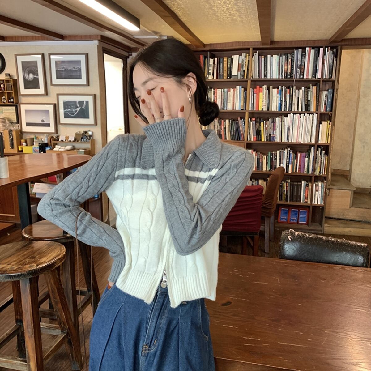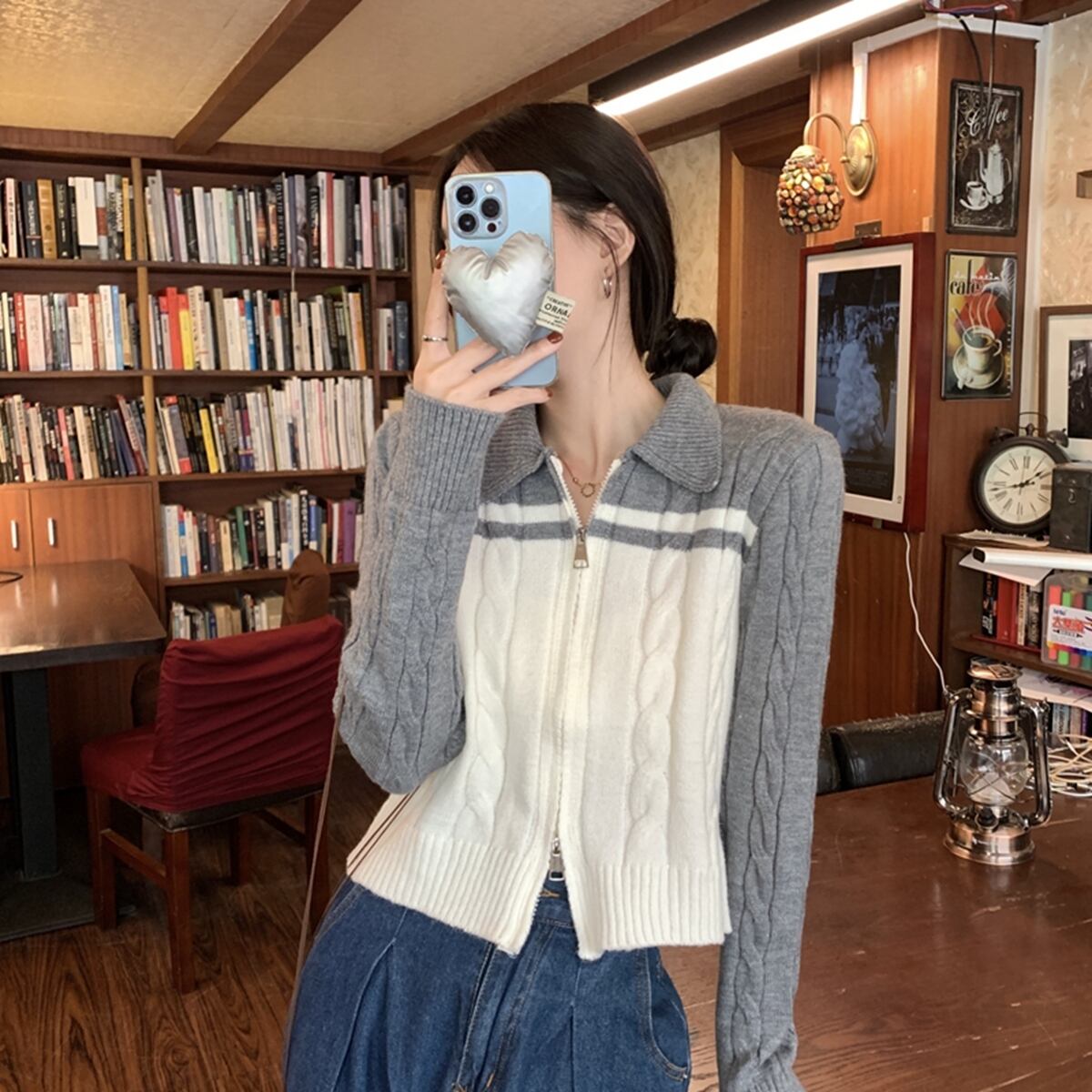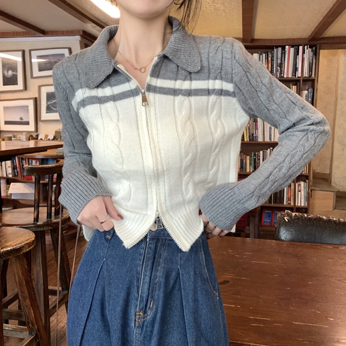 トップス レディース ニット カーディガン ショート丈 袖あり ジップ 前開き 長袖 襟付き ポロカラー Vネック バイカラー 大人可愛い きれいめ シンプル カジュアル 上品 こなれ感 ラフ ラブリー キュート 個性的 無地 春 秋 10代 20代 30代 女性用 オフィス ビジネス OL 通勤 学生 通学 デート お出かけ 女子会 お泊まり 休日 パーティー イベント 着回し 普段使い ファッション コーデ スタイル モテ プレゼント ギフト サイズ 色展開 ワンサイズ グレー ネイビー