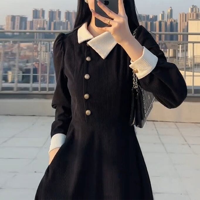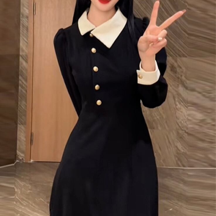 ワンピース レディース シフォン シャツワンピ ミモレ丈 膝下丈 フレアスカート アシンメトリー 変形 金ボタン マット キーネック くるみボタン キャンディースリーブ Aライン メロウ セミフレア 長袖 襟付き スマート シンプル カジュアル きれいめ 上品 おしゃれ お洒落 大人っぽい 春 秋 無地 女性用 ママ 女の子 OL 通勤 学生 通学 デート お出かけ 女子会 休日 普段使い 重ね着 着回し 韓国風 オルチャン S M L XL 2XL アプリコット マシュマロ女子 ブラック カラバリ