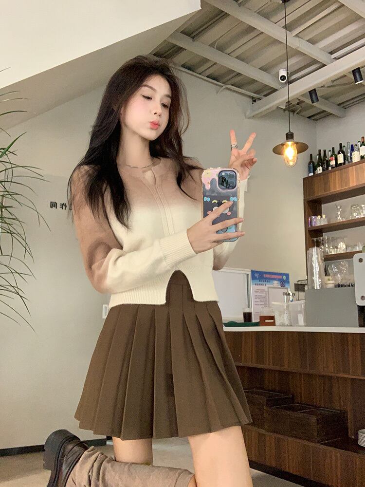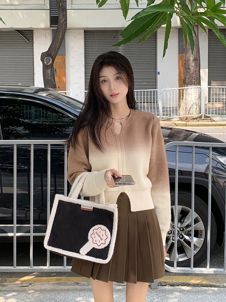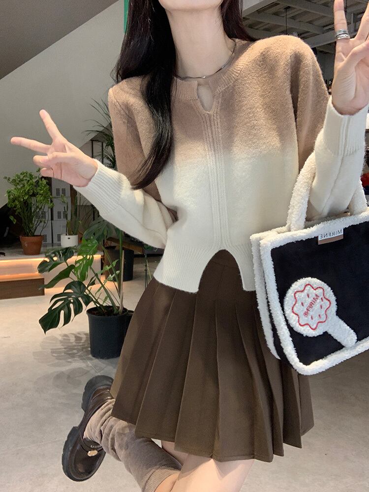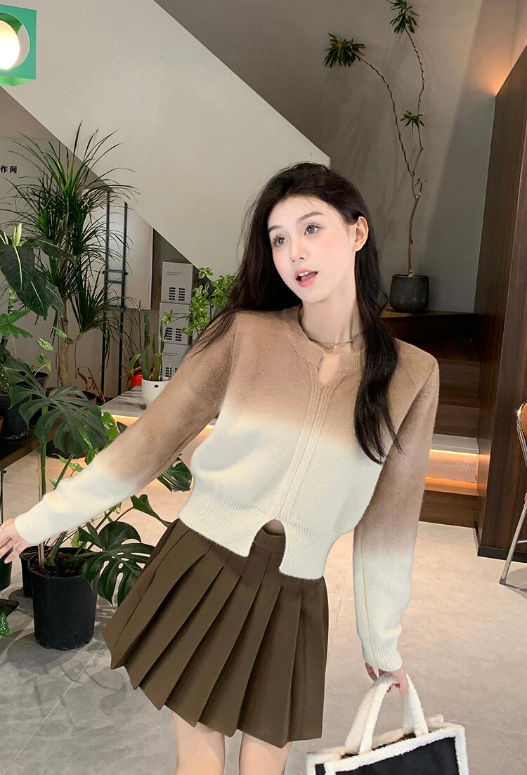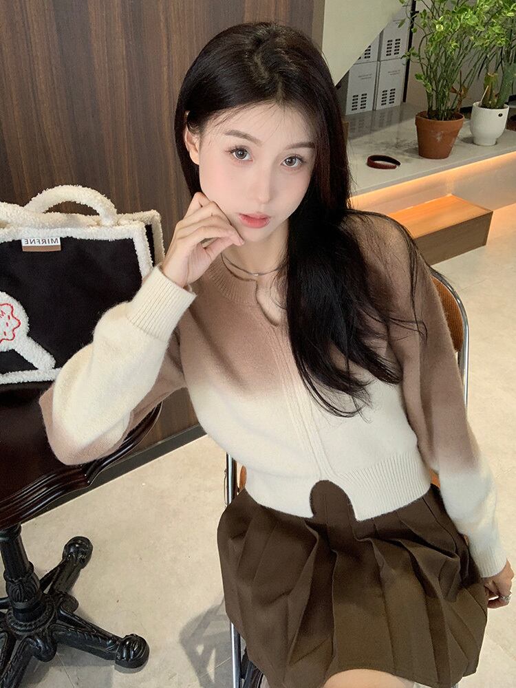 グラデーションが可愛いキーネッククロップ丈ニット。