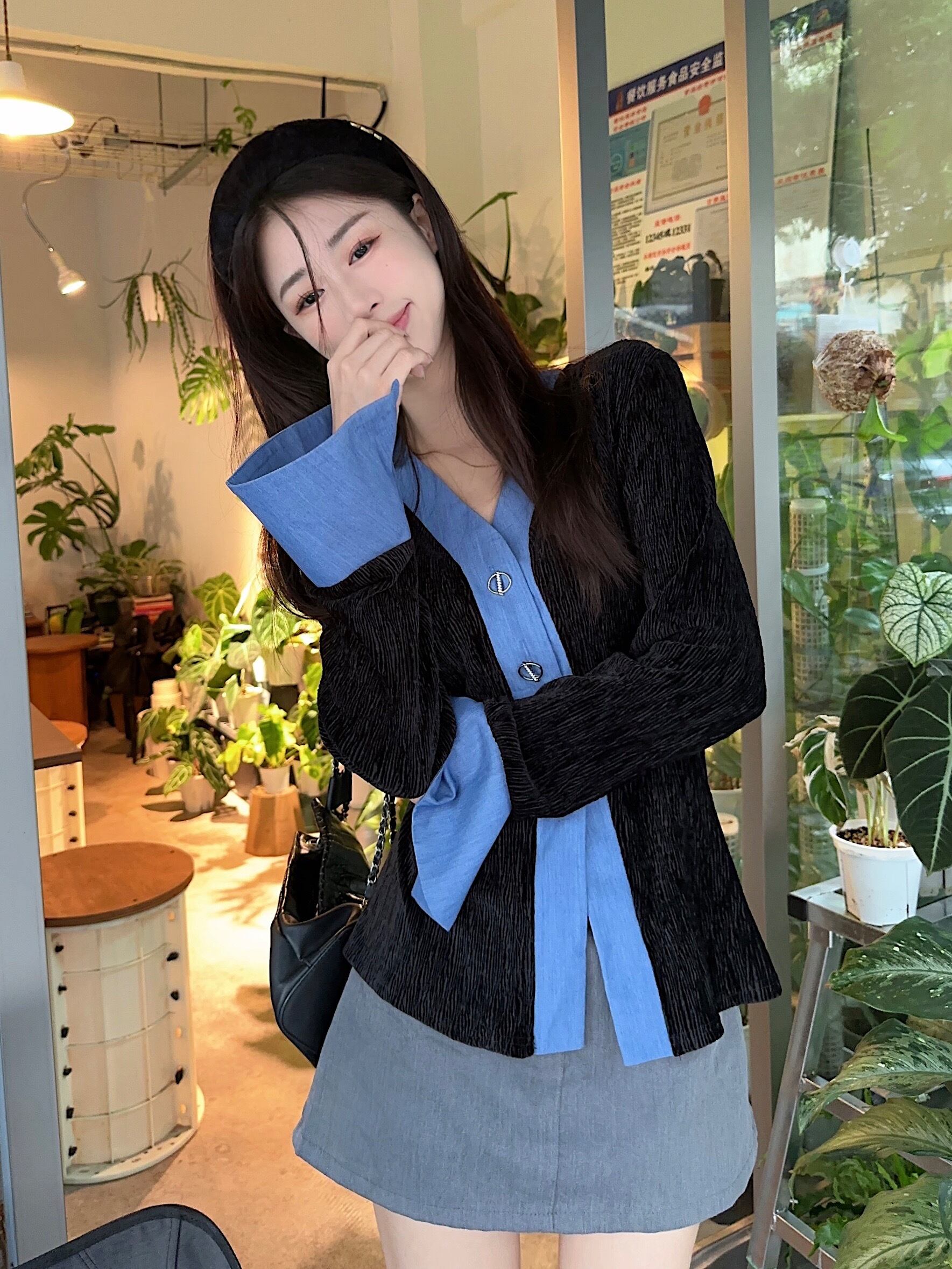 トップス シャツ ブラウス 袖あり 長袖 Vネック ノーカラー フレアスリーブ 前開き かわいい 大人可愛い 甘め きれいめ シンプル カジュアル 上品 お洒落 大人女子 こなれ感 ガーリー フェミニン エレガント 主役級 抜け感 無地 春 秋 冬 20代 30代 40代 ママ 通勤 通学 デート お出かけ 女子会 休日 着回し 普段使い 重ね着 韓国系 体型カバー 定番 トレンド 流行 インスタ映え クラシカル ネイビー S M L