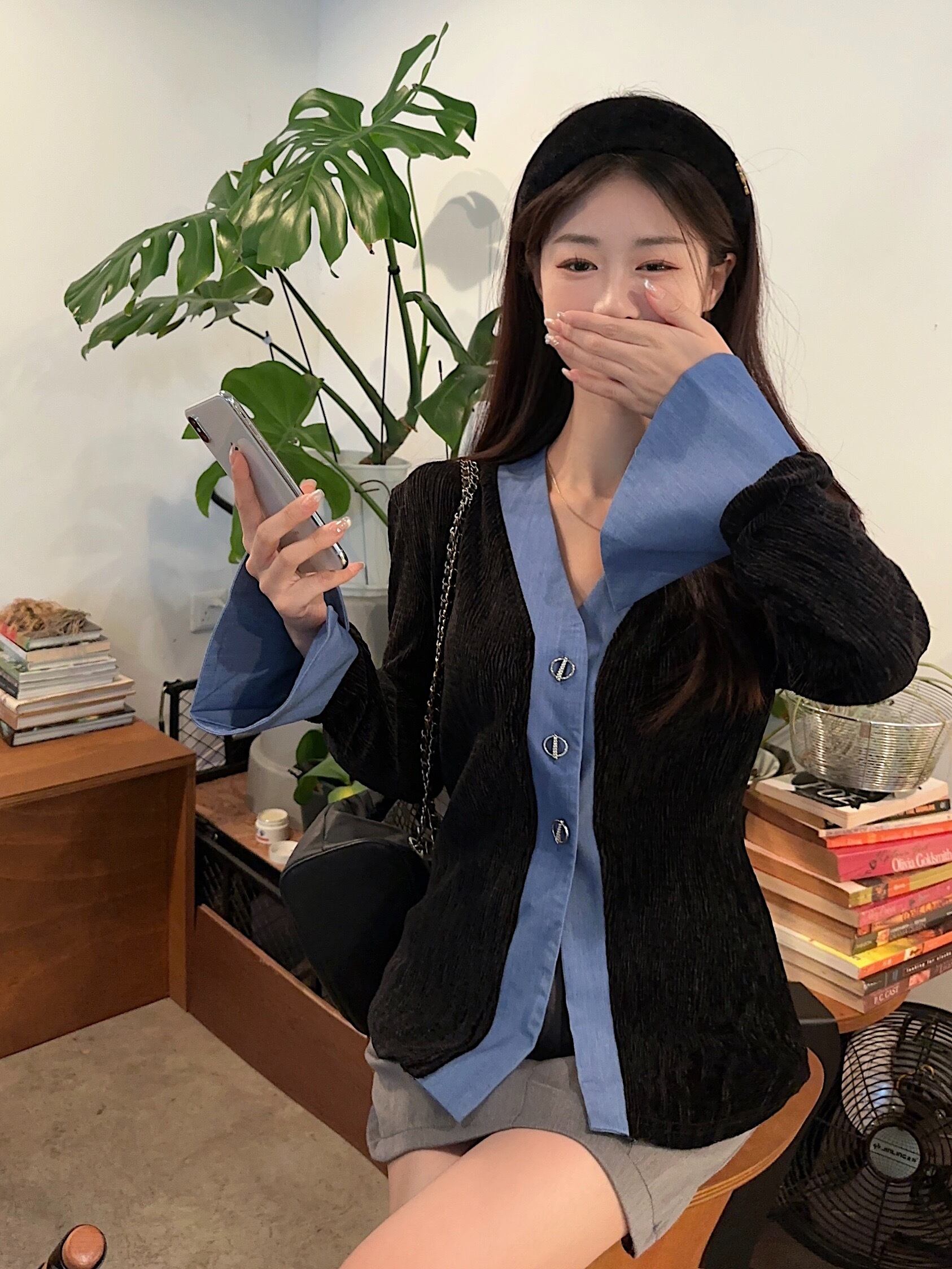 レトロなニュアンスのバイカラー配色でオンオフ問わず着用して頂けます。