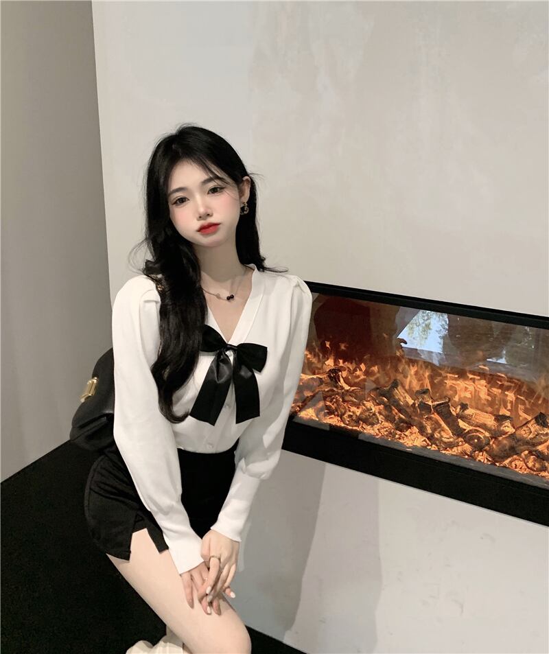 ツヤ感が上品な大きめリボンがフェミニンで可愛い。