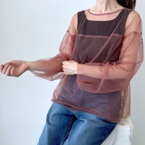 ブラウス トップス シャツ 袖あり ブラウス Tシャツ アンサンブル セット バルーンスリーブ パフスリーブ シースルー クルーネック 透け感 シフォン 長袖 かわいい 大人可愛い きれいめ シンプル カジュアル 大人 上品 おしゃれ お洒落 主役級 存在感 春 秋 10代 20代 30代 レディース 女性用 OL 学生 デート お出かけ 公園デビュー 女子会 休日 イベント 旅行 着回し 普段使い コーデ 楽ちん モテ インスタ映え ワンサイズ ダークグレー アズキ クリーム