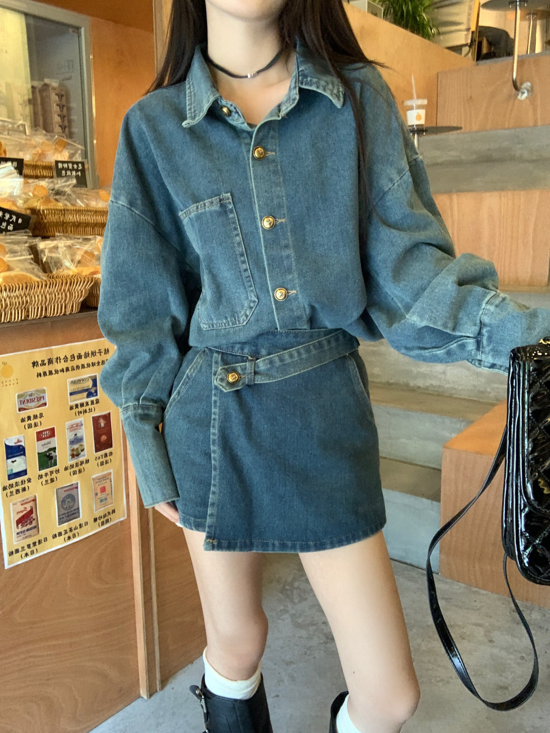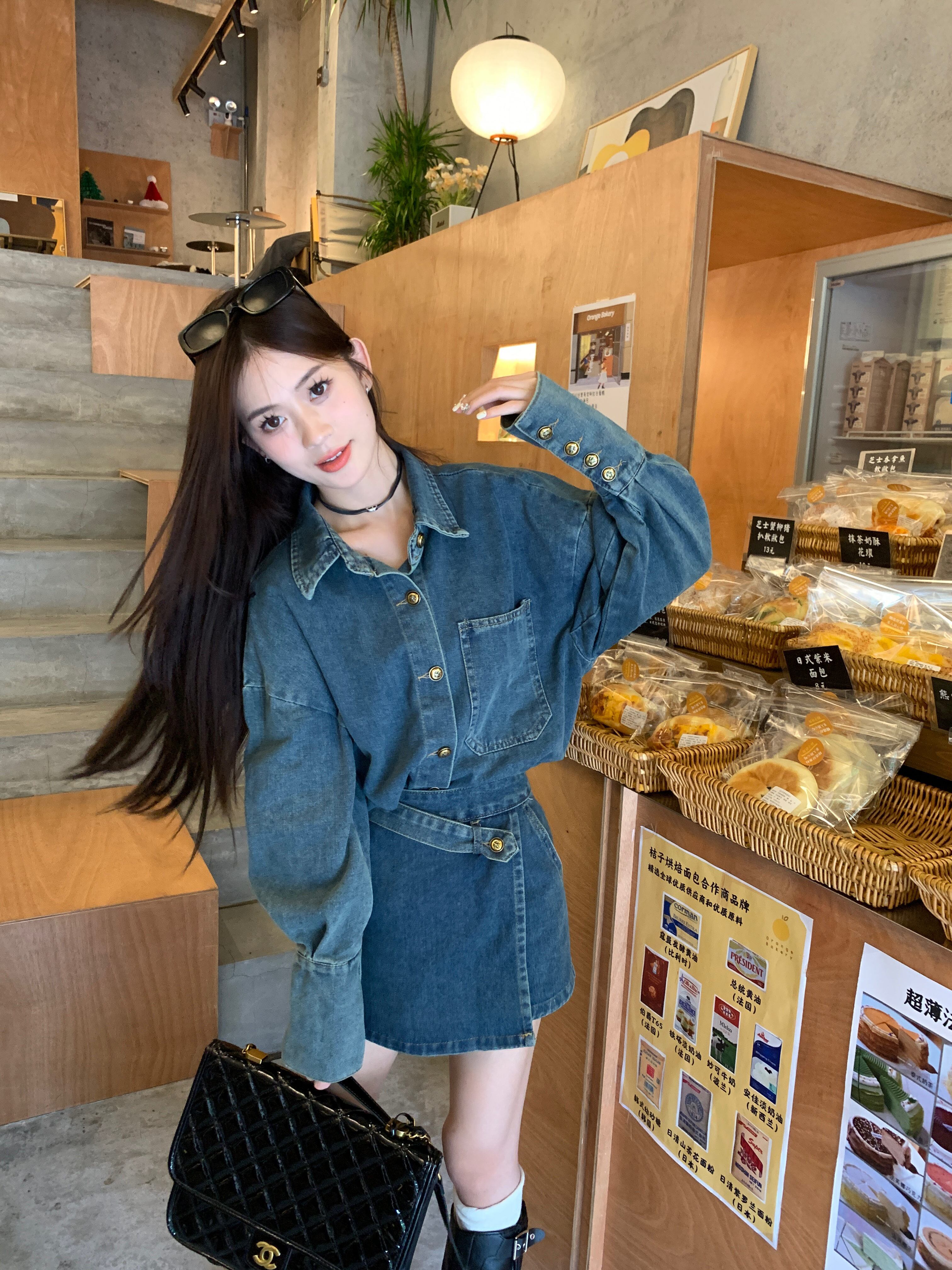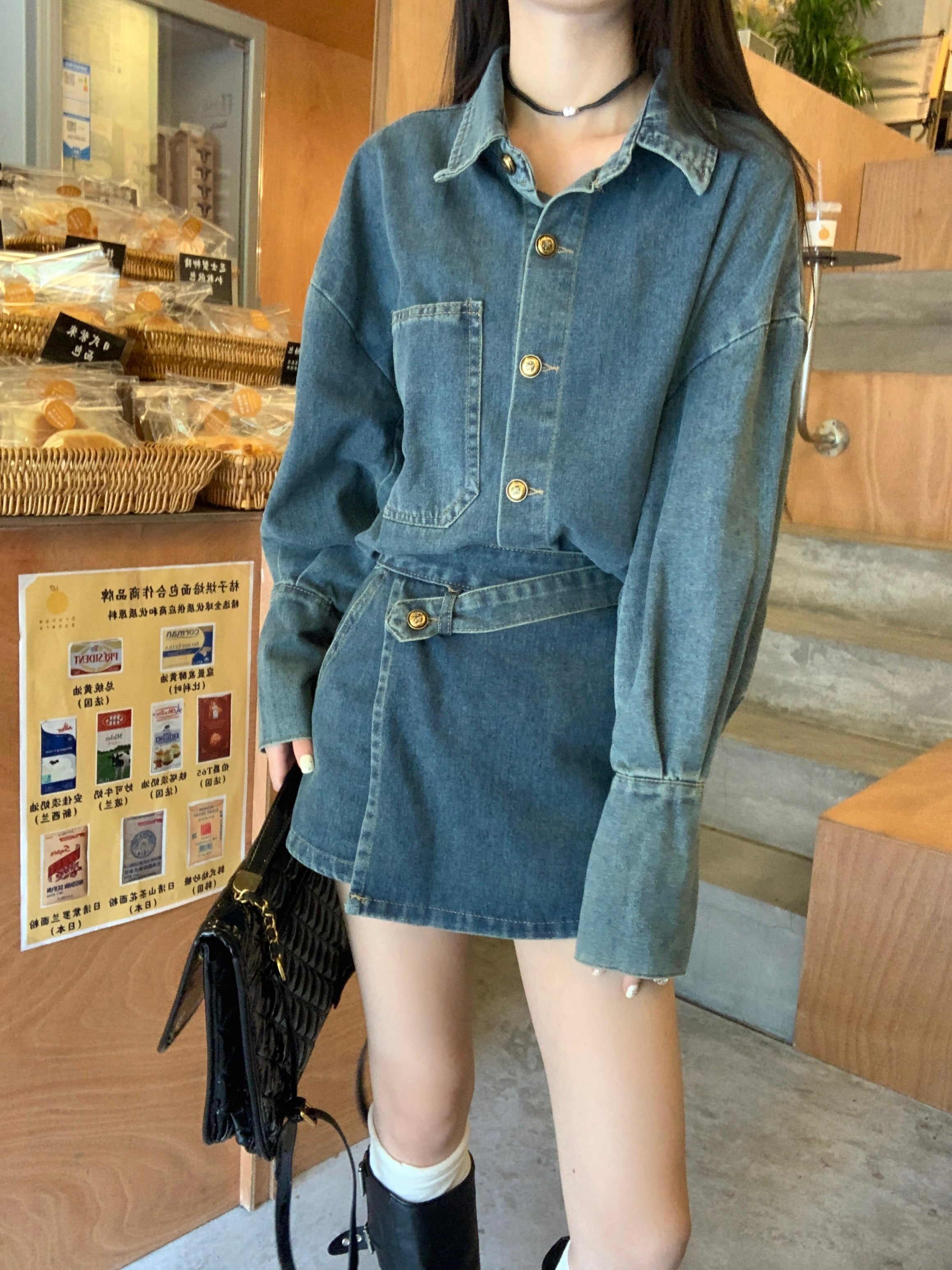 セットアップ ブラウス スカート ワンピース風 デート デニム ミニ ショート丈 ベルト 巻きスカート ラップスカート 袖あり かわいい 大人可愛い きれいめ シンプル カジュアル 大人 上品 おしゃれ お洒落 主役級 存在感 春 秋 10代 20代 30代 レディース 女性用 OL 学生 デート お出かけ 公園デビュー 女子会 休日 イベント 旅行 着回し 普段使い ファッション コーデ 楽ちん モテ トレンド 流行 インスタ映え S M L ビッグサイズ ゆったり ブルー
