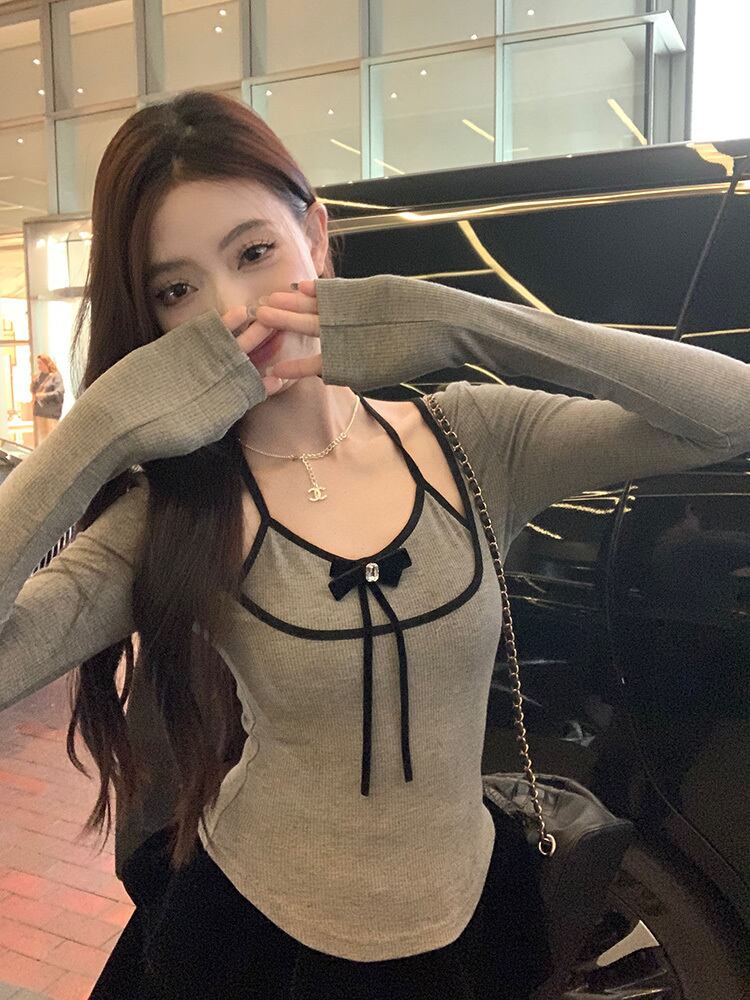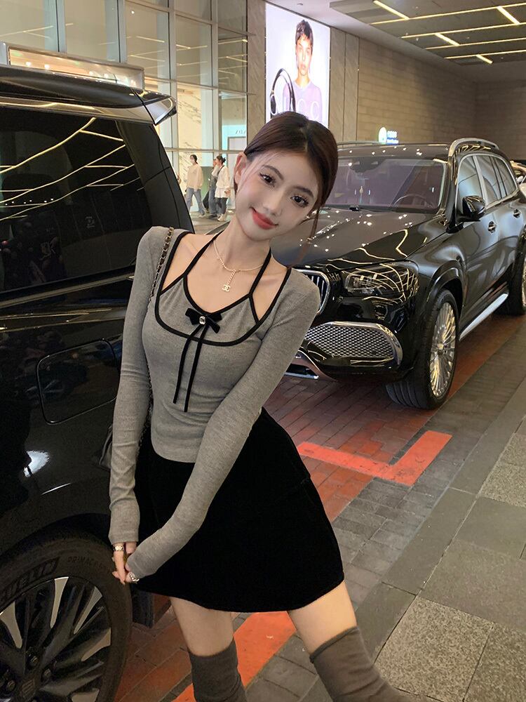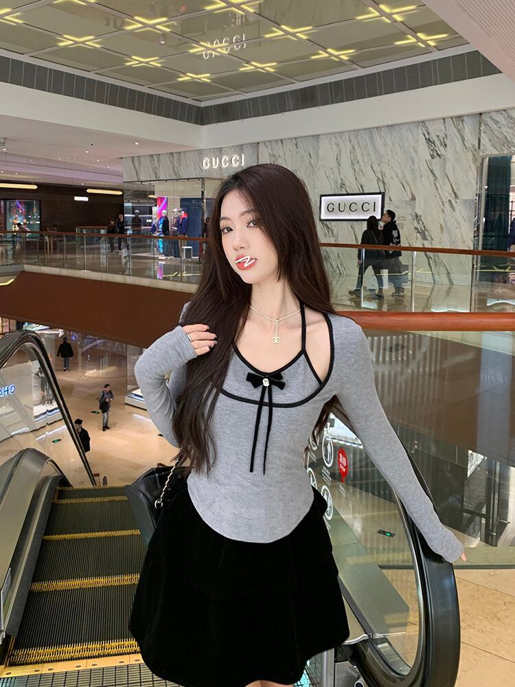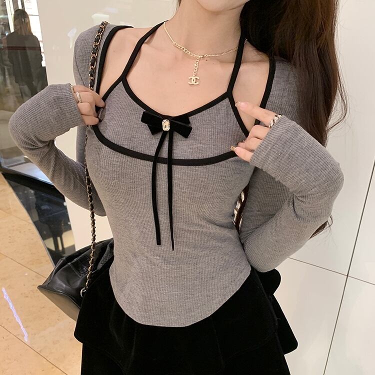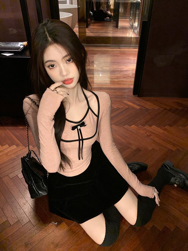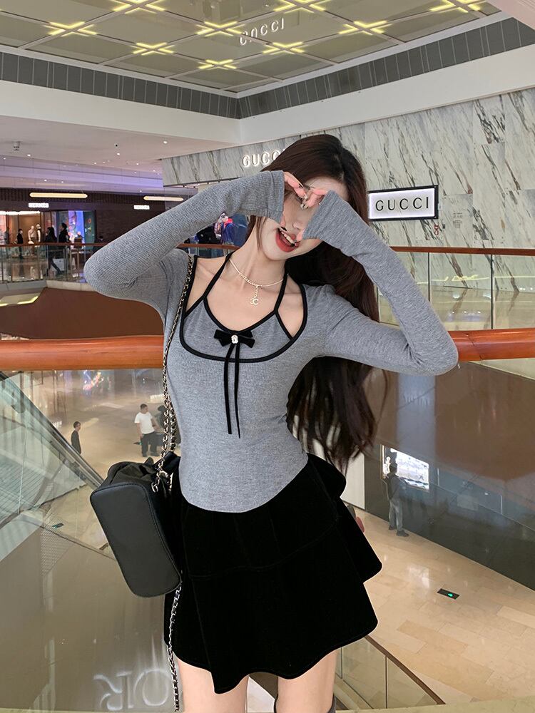 カットソー トップス デート フェイクレイヤード パイピング ホルターネック カットアウト バイカラー ツートーン タイト 袖あり リボン 長袖 かわいい 大人可愛い きれいめ シンプル カジュアル 大人 上品 おしゃれ お洒落 主役級 存在感 春 秋 冬 10代 20代 30代 レディース 女性用 OL 学生 デート お出かけ 公園デビュー 女子会 休日 イベント 旅行 着回し 普段使い コーデ 楽ちん モテ インスタ映え S M L ピンク グレー