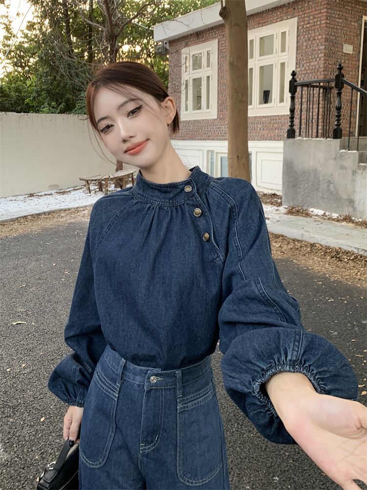 深みのあるシックなネイビーブルーが大人かわいい一枚です。