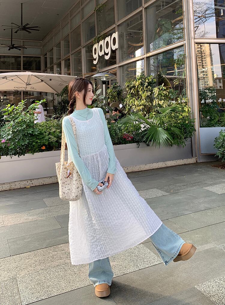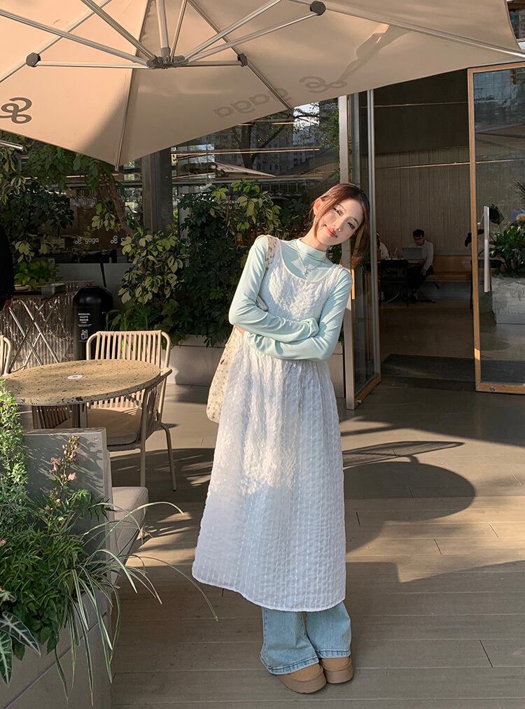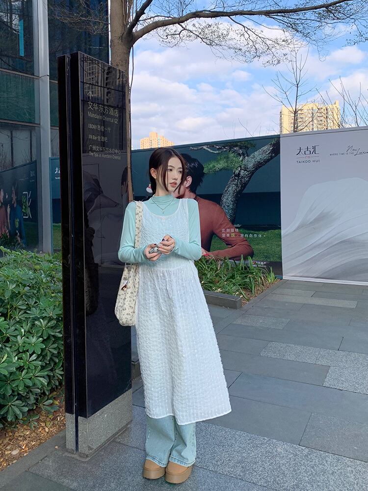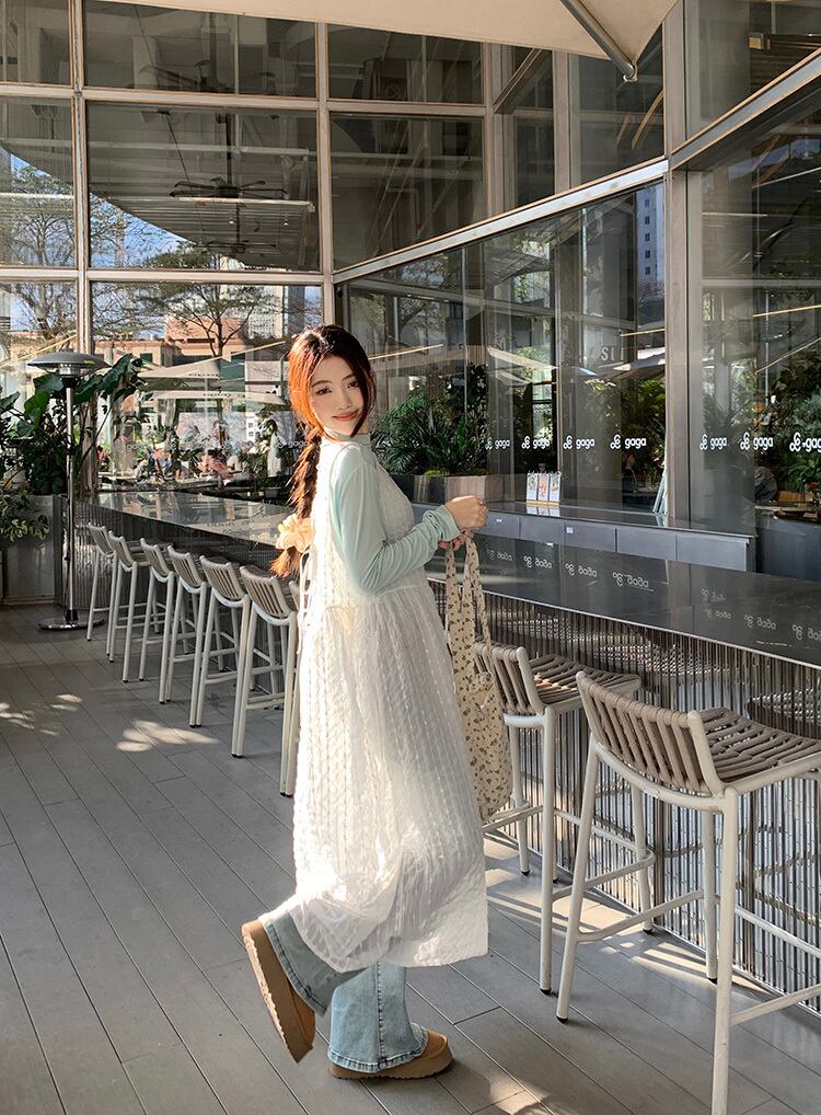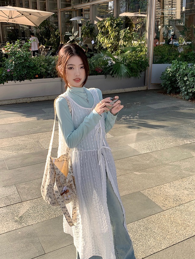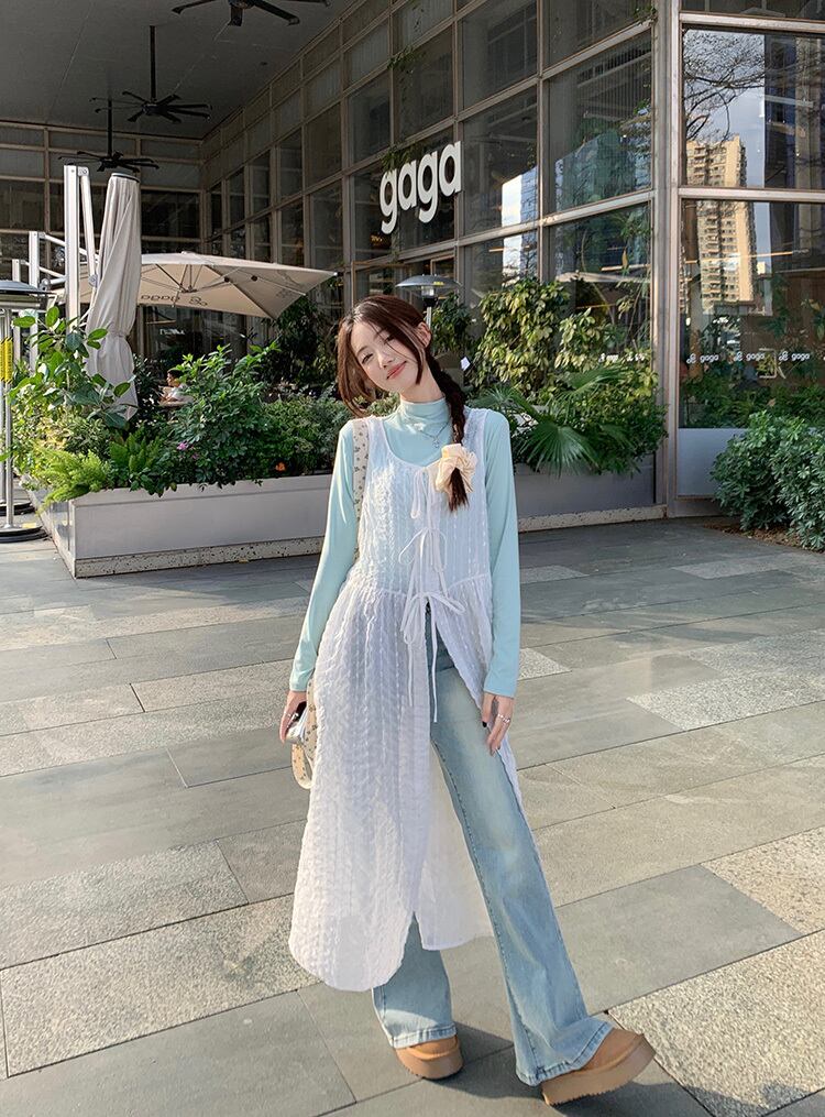 透け感がありワイドなのでパンツとレイヤードしてもおしゃれです。