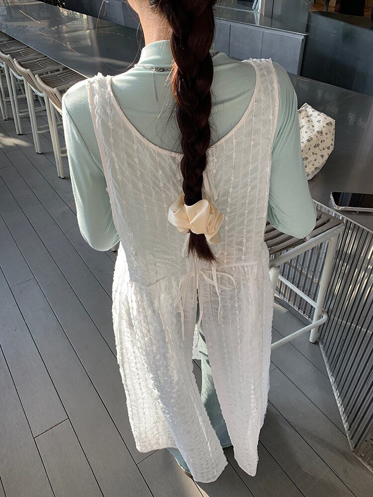 ワンピース デート ミモレ ドット 水玉 ハイウエスト シアー ストライプ バックリボン スリット レイヤード ラウンドネック フレアスカート ノースリーブ かわいい 大人可愛い きれいめ シンプル カジュアル 大人 上品 おしゃれ お洒落 主役級 存在感 春 秋 10代 20代 30代 レディース 女性用 OL 学生 デート お出かけ 公園デビュー 女子会 休日 イベント 旅行 着回し 普段使い ファッション コーデ 楽ちん モテ トレンド 流行 インスタ映え ワンサイズ ゆったり ホワイト
