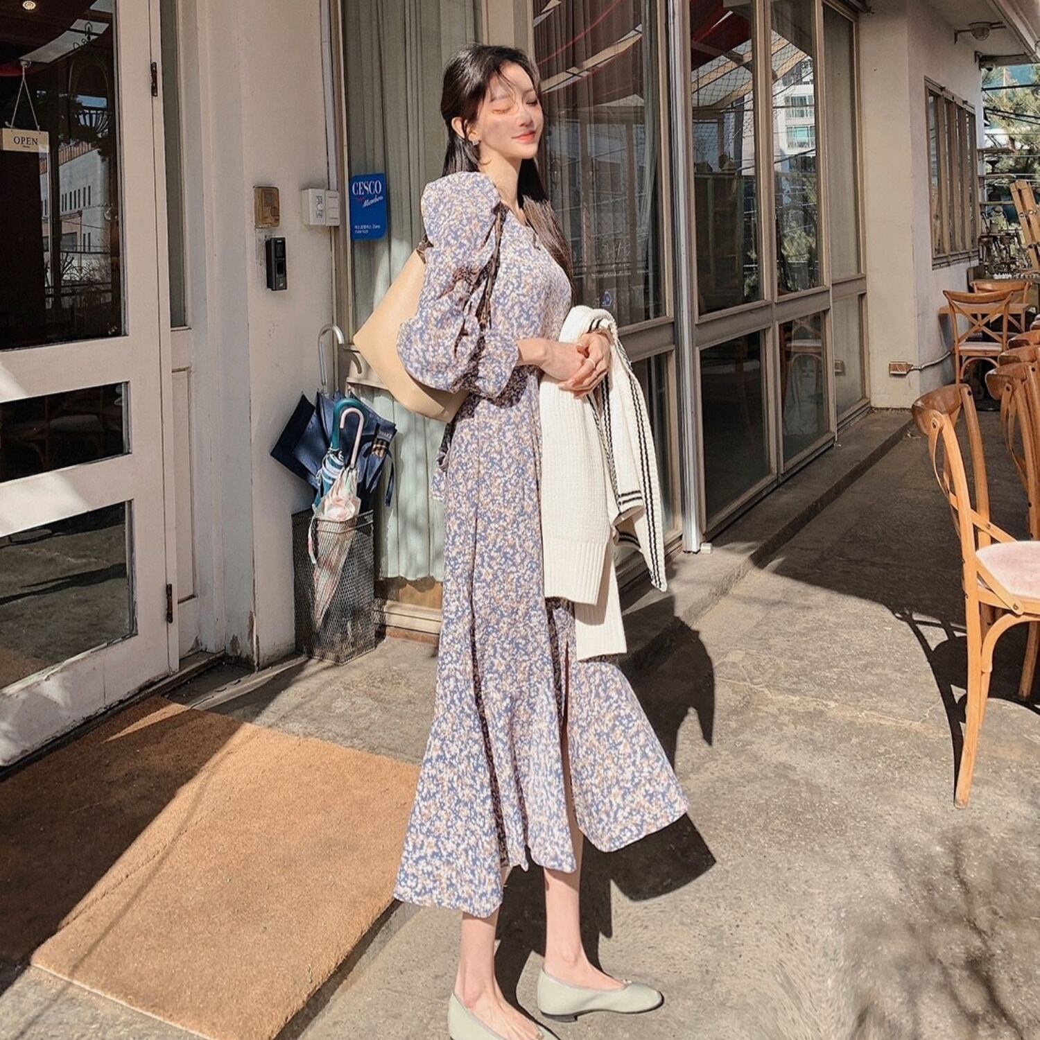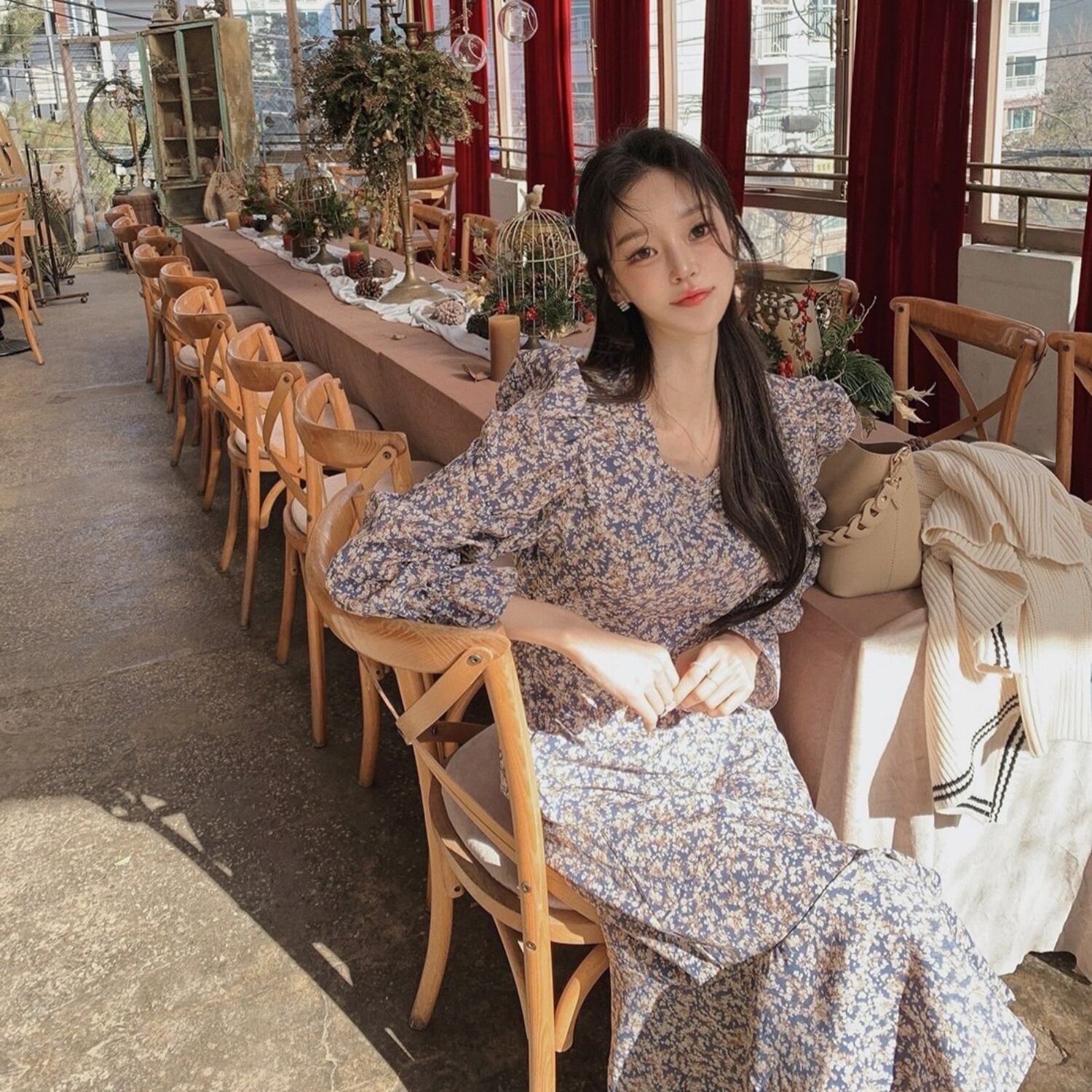 ワンピース レディース ドレス ひざ下 ミモレ丈 マーメイド 膝下丈 袖あり 花柄 スリット スクエアネック パワーショルダー フリル リボン ボウタイ長袖 萌袖 Vネック ハイウエスト 襟なし かわいい 可愛い 大人可愛い フォーマル おしゃれ お洒落 キュート 個性的 主役級 存在感 無地 春 夏 秋 冬 誕生日 パーティー ガーデン 10代 20代 30代 女性用 学生 通学 デート お出かけ 女子会 休日 イベント リゾート 旅行 着回し 重ね着 お揃い 双子 韓国 ワンサイズ ブルー