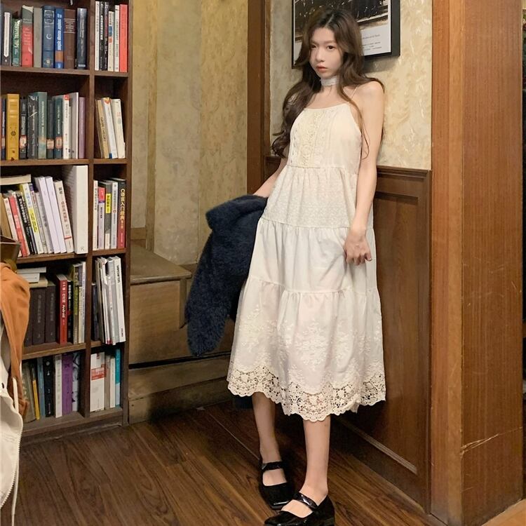 ワンピース キャミソール レトロ ミモレ丈 ティアード ひざ下 プリーツ 膝下丈 袖ありノースリーブ レース 花柄 襟なし Aライン かわいい 可愛い シンプル 大人可愛い おしゃれ お洒落 アジアン キュート 個性的 主役級 存在感 無地 春 夏 秋 冬 誕生日 パーティー 10代 20代 30代 レディース 女性用 学生 通学 デート お出かけ 女子会 休日 イベント リゾート 旅行 着回し 重ね着 お揃い 双子 韓国 S M L アプリコット