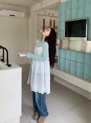 トップス ワンピース 別売り カットソー 袖あり キャミ 長袖 ハーフハイネック 透け感 ピンタック パンチングレース シースルー かわいい 大人可愛い こなれ感 クール 無地 春 夏 秋 冬 オールシーズン シーズンレス 10代 20代 30代 40代 レディース 女性用 ママ 休日 パーティー イベント 着回し 普段使い 重ね着 コーデ モテ インスタ映え ワンサイズ ホワイト ブルー
