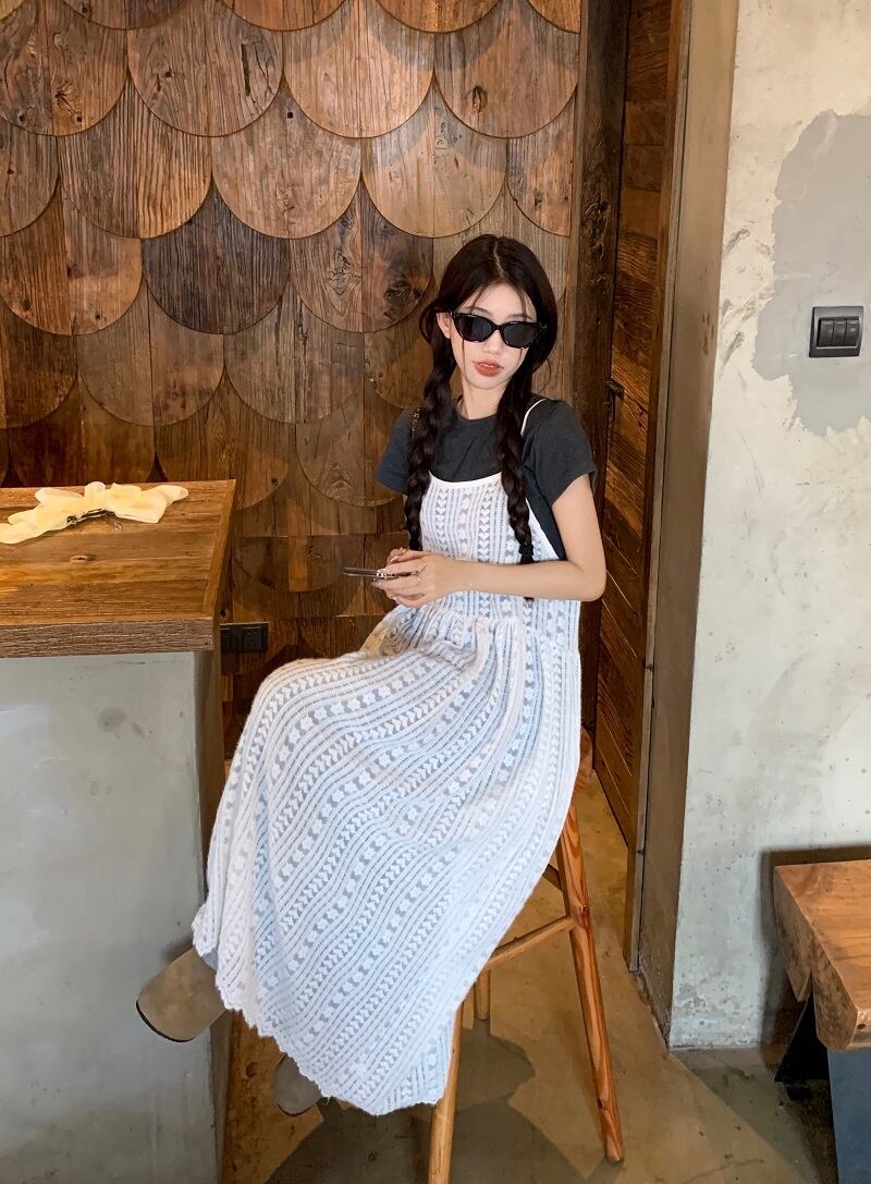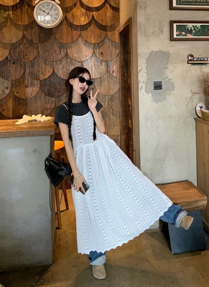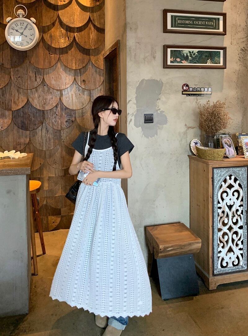 トップス ワンピース 別売り カットソー 袖あり キャミ 半袖 総レース クルーネック 透け感 かわいい 大人可愛い こなれ感 クール 無地 春 夏 秋 冬 オールシーズン シーズンレス 10代 20代 30代 40代 レディース 女性用 ママ 休日 パーティー イベント 着回し 普段使い 重ね着 コーデ モテ インスタ映え ワンサイズ ホワイト グレー