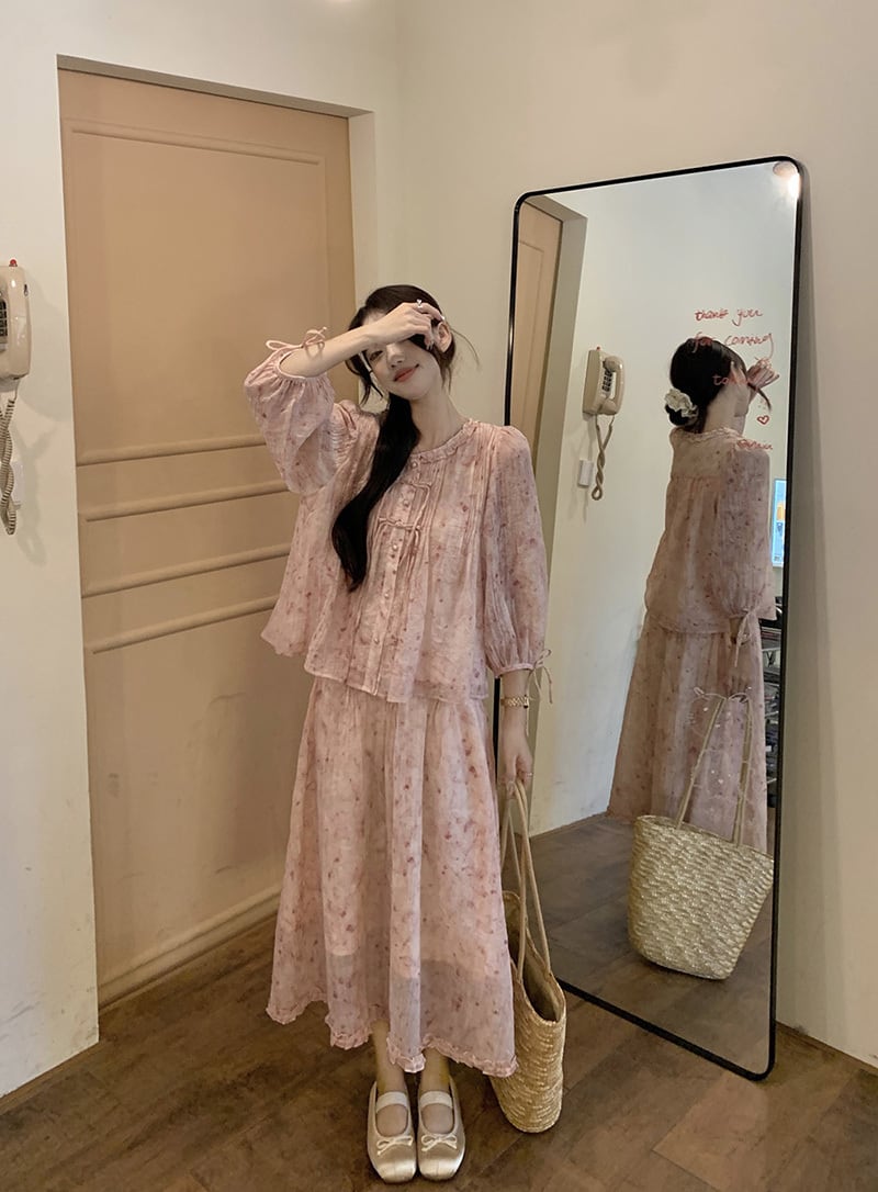 トップス シャツ ブラウス ロング丈 袖あり 長袖 クルーネック チャイナシャツ リボン ピンタック フリル 花柄 ワイド リボン ボウタイ 大人可愛い きれいめ シンプル 大人 上品 おしゃれ 大人女子 こなれ感 個性的 無地 春 秋 10代 20代 30代 レディース 女性用 オフィス ビジネス OL 通勤 学生 通学 お出かけ 女子会 お泊まり 休日 パーティー 旅行 レストラン 着回し 普段使い 重ね着 お揃い コーデ スタイル 楽ちん 体型カバー サイズ S M L ピンク ブルー