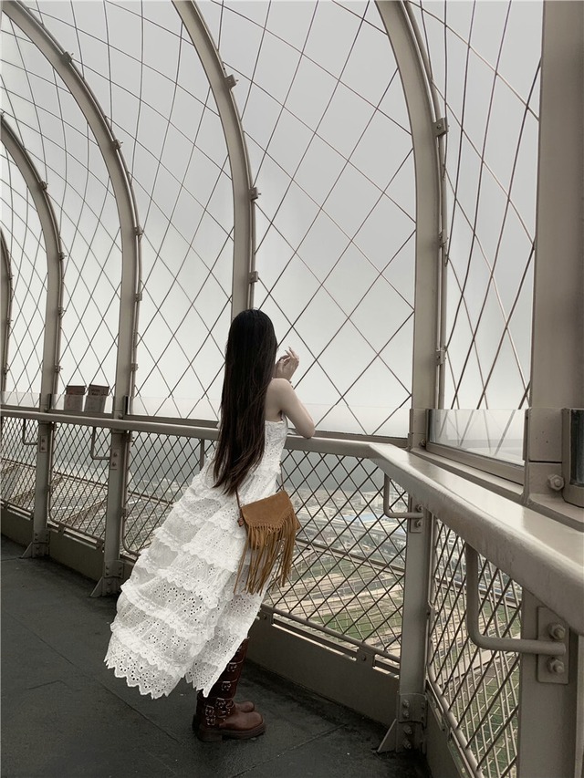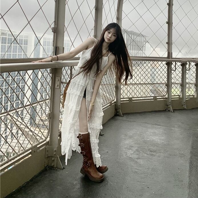 ワンピース キャミソール ミモレ丈 ティアード パンチングレース 花柄 透け感 シースルー かわいい 大人可愛い こなれ感 クール 無地 春 夏 秋 冬 オールシーズン シーズンレス 10代 20代 30代 40代 レディース 女性用 ママ 休日 パーティー イベント 着回し 普段使い 重ね着 コーデ インスタ映え S M L ホワイト