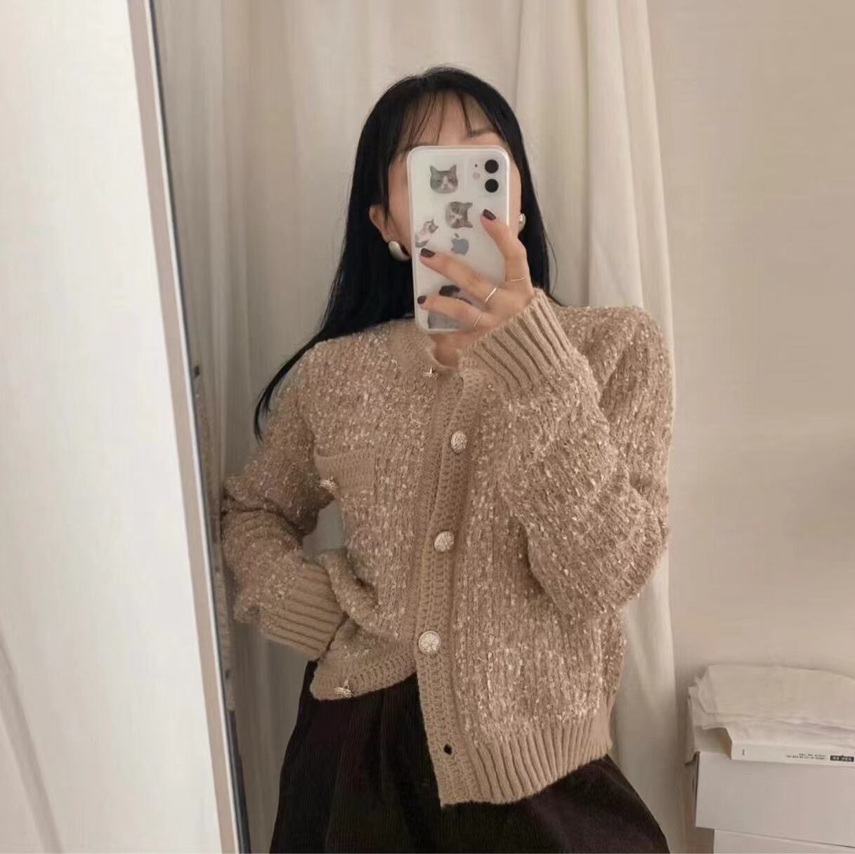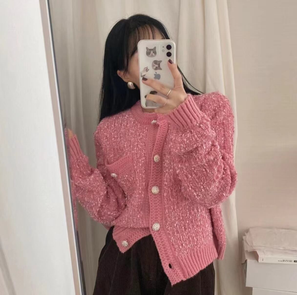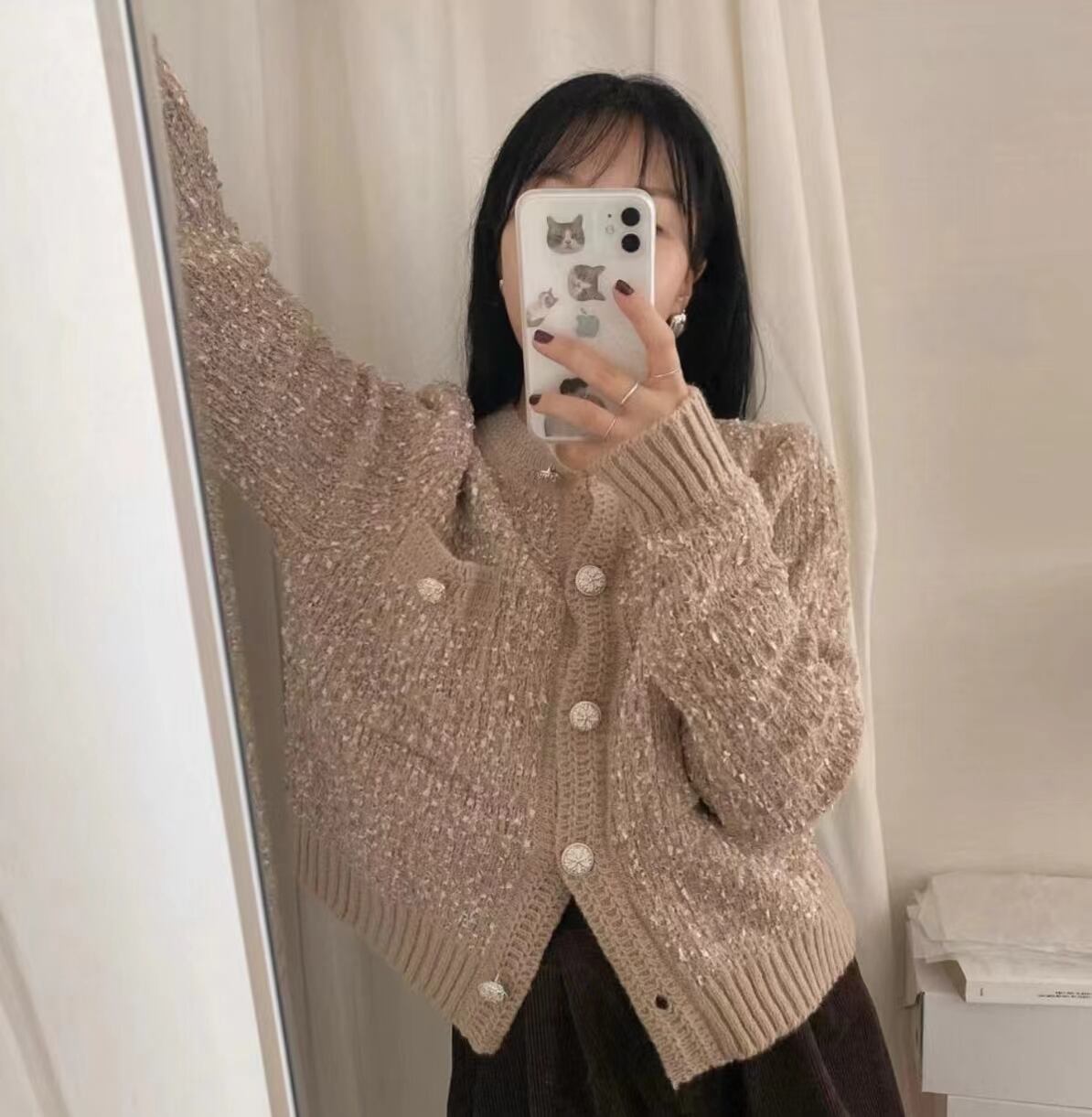 カーディガン トップス ショート クルーネック ビジュー ラインストーン パイピング メッシュ モールニット レディース 切り替え 長袖 セーター 大人可愛い きれいめ 上品 エレガント ガーリー キュート レトロ マニッシュ ルーズ 大人女子 おしゃれ シンプル カジュアル 春 秋 冬 二次会 オフィス 通勤 学生 通学 デート お出かけ パーティー イベント 女子会 体型カバー 普段使い 定番 トレンド ゆったり インスタ映え ワンサイズ ホワイト ブラック グレー カーキ ピンク