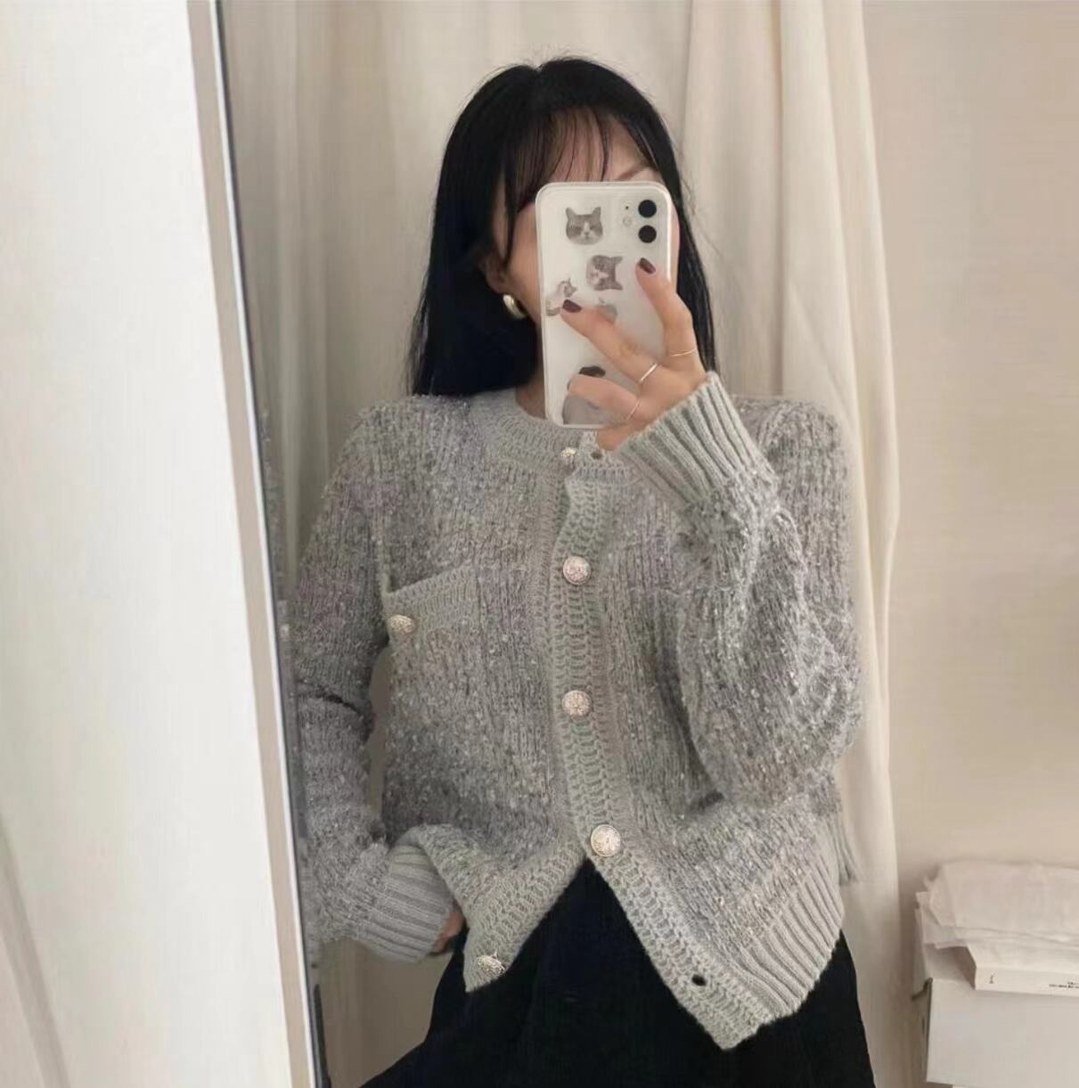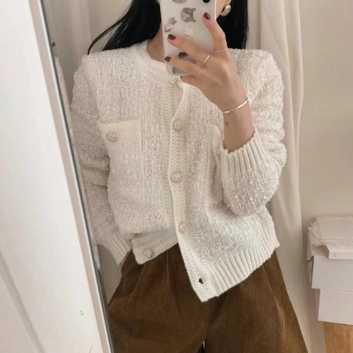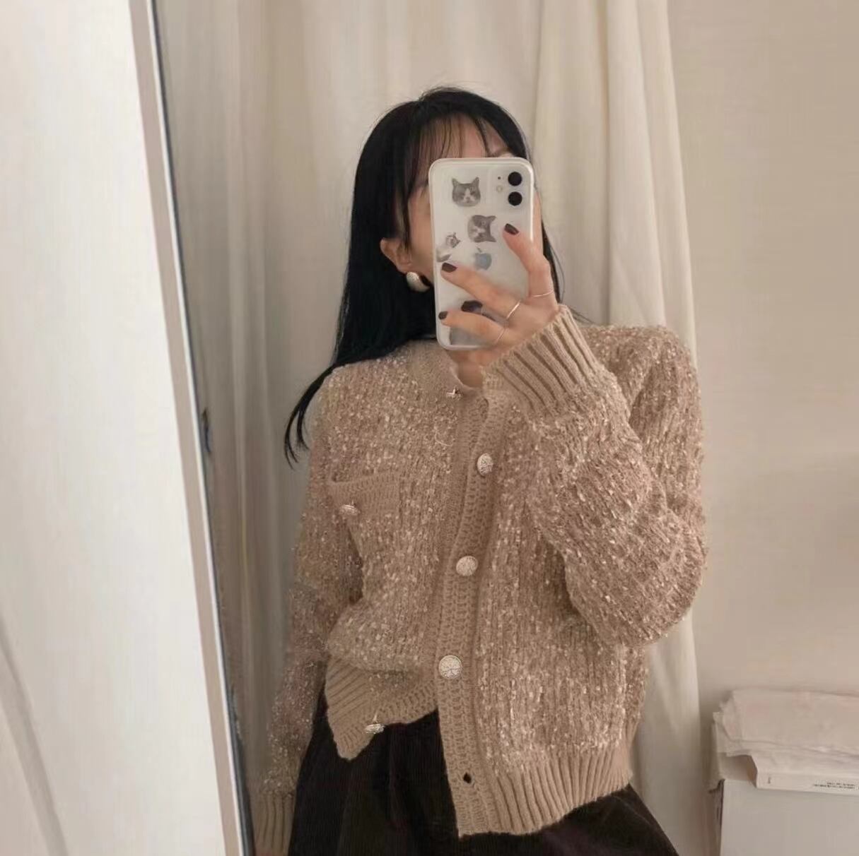 カーディガン トップス ショート クルーネック ビジュー ラインストーン パイピング メッシュ モールニット レディース 切り替え 長袖 セーター 大人可愛い きれいめ 上品 エレガント ガーリー キュート レトロ マニッシュ ルーズ 大人女子 おしゃれ シンプル カジュアル 春 秋 冬 二次会 オフィス 通勤 学生 通学 デート お出かけ パーティー イベント 女子会 体型カバー 普段使い 定番 トレンド ゆったり インスタ映え ワンサイズ ホワイト ブラック グレー カーキ ピンク