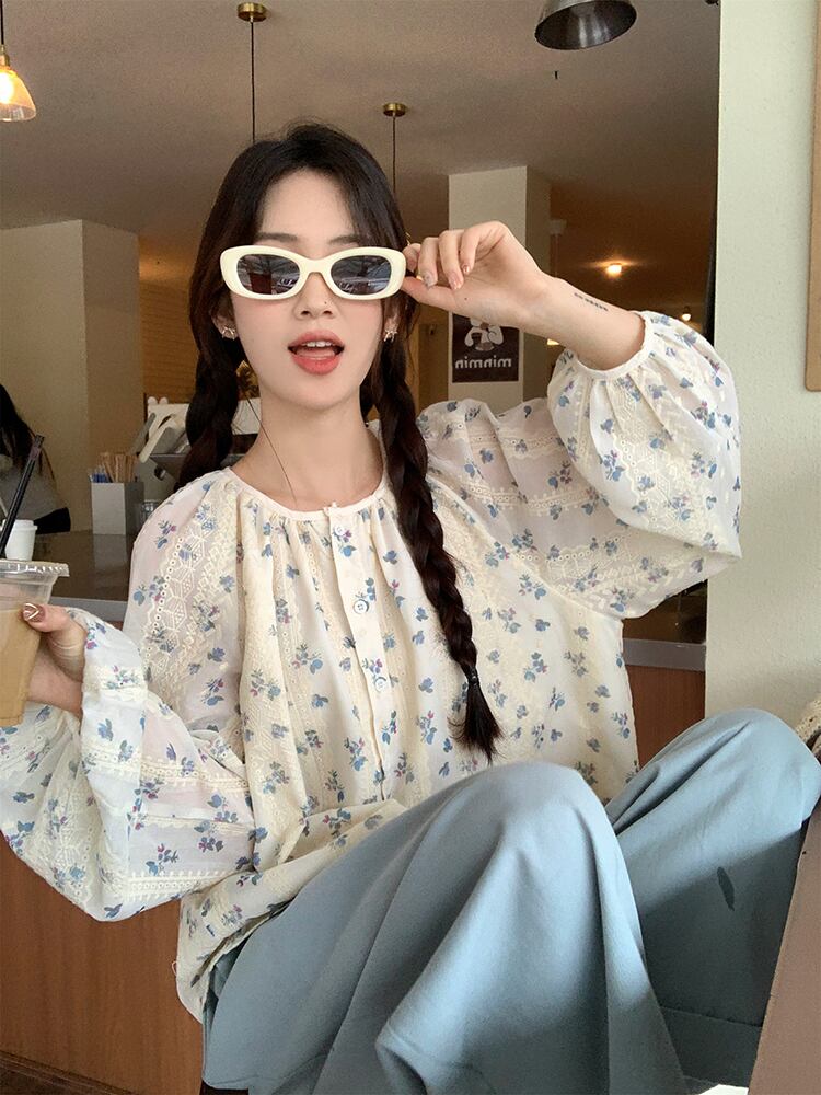 トップス シャツ ブラウス ロング丈 袖あり 長袖 クルーネック レース バルーンスリーブ 花柄 ワイド 大人可愛い きれいめ シンプル 大人 上品 おしゃれ 大人女子 こなれ感 個性的 無地 春 秋 10代 20代 30代 レディース 女性用 オフィス ビジネス OL 通勤 学生 通学 お出かけ 女子会 お泊まり 休日 パーティー 旅行 レストラン 着回し 普段使い 重ね着 お揃い コーデ スタイル 楽ちん 体型カバー サイズ S M ホワイト