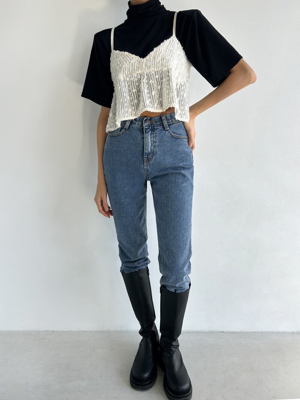 肩紐長めでデコルテに抜け感をプラスするキャミソールです。