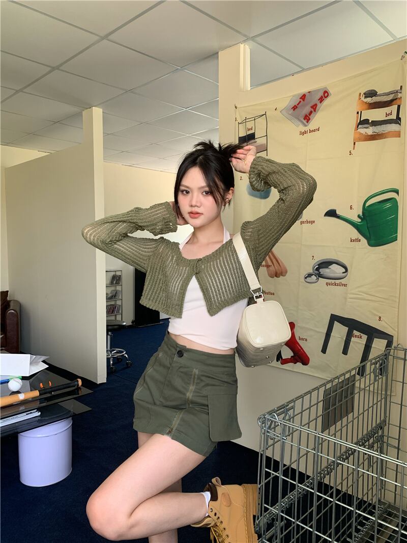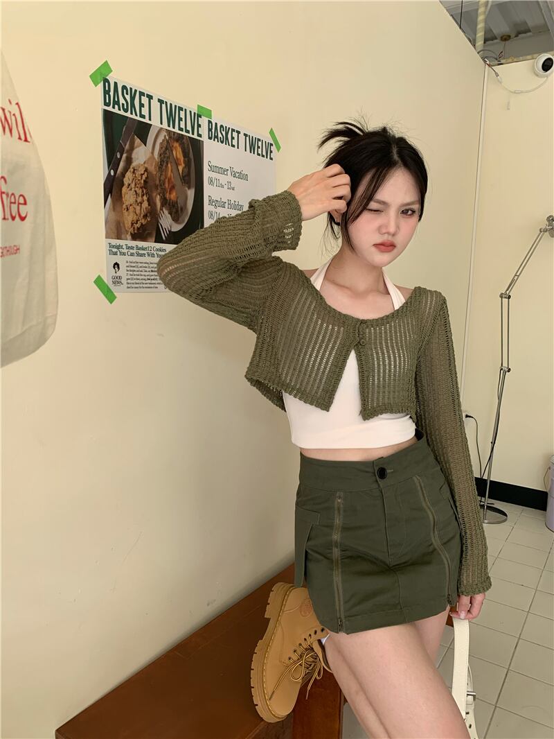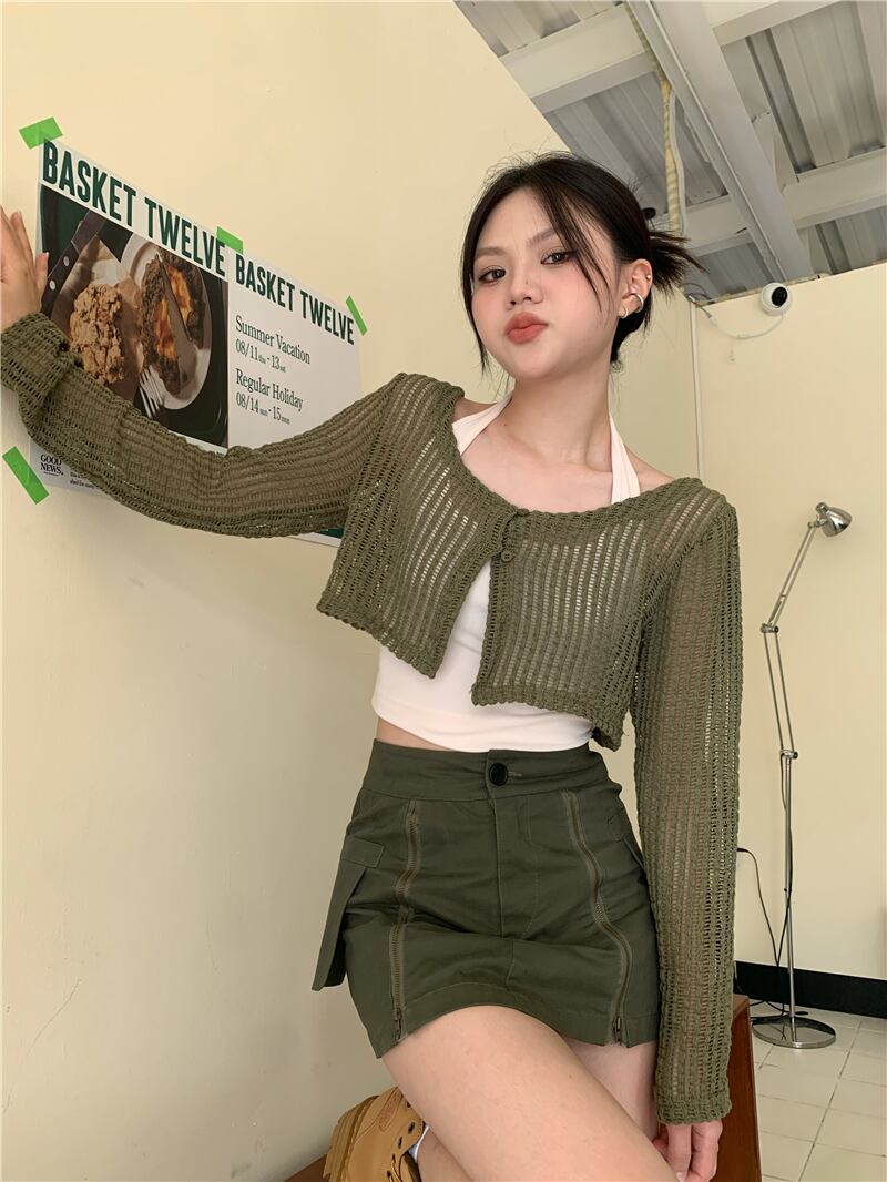カーディガン トップス クロップド ラウンドネック ボレロ メッシュ ローゲージ 透け感 シアー レディース 切り替え タイト 長袖 セーター 大人可愛い きれいめ 上品 エレガント ガーリー キュート レトロ マニッシュ ルーズ 大人女子 おしゃれ シンプル カジュアル 春 夏 秋 冬 二次会 オフィス 通勤 学生 通学 デート お出かけ パーティー イベント 女子会 体型カバー 普段使い 定番 トレンド ゆったり インスタ映え ワンサイズ アプリコット グリーン