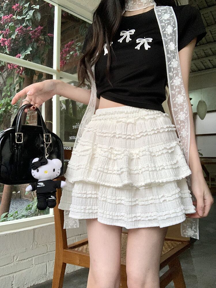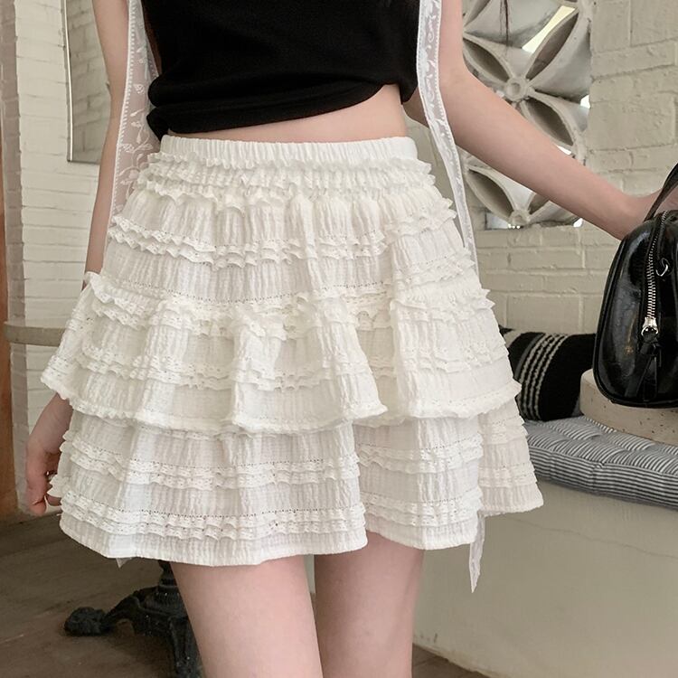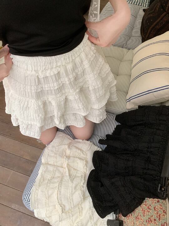 フリルのボリューム感がガーリーなティアードミニスカートです。