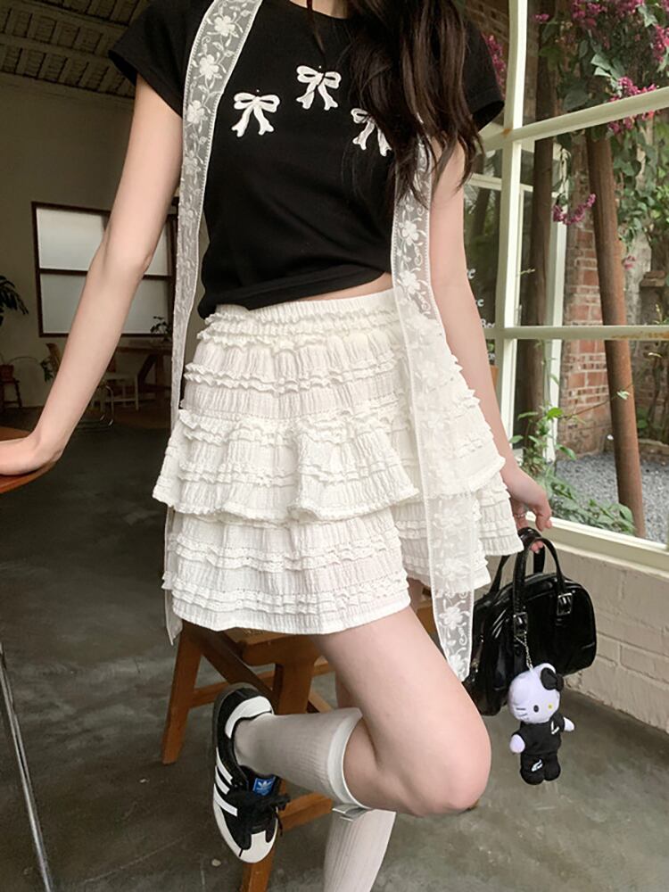 ワイドな2層のレースでスタイルアップ効果もあり、ドーリーな雰囲気が愛らしい一着。