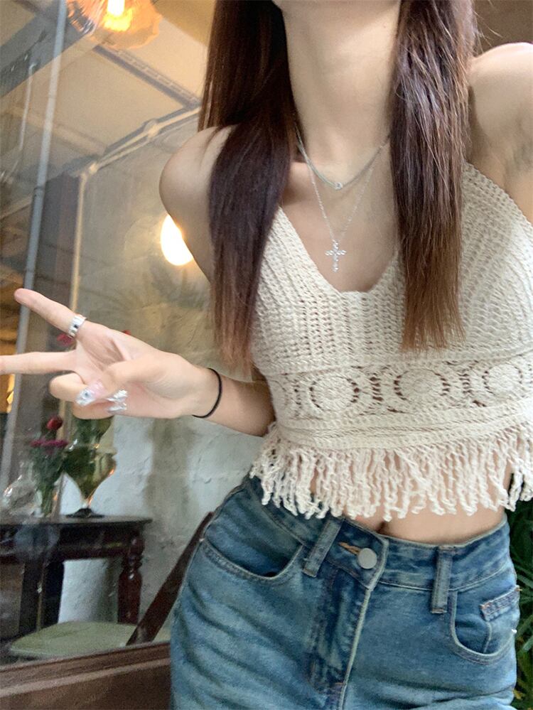 ざっくりとしたかぎ編みがトレンドライクなニットビスチェです。