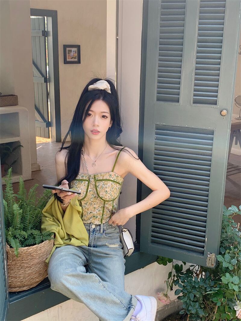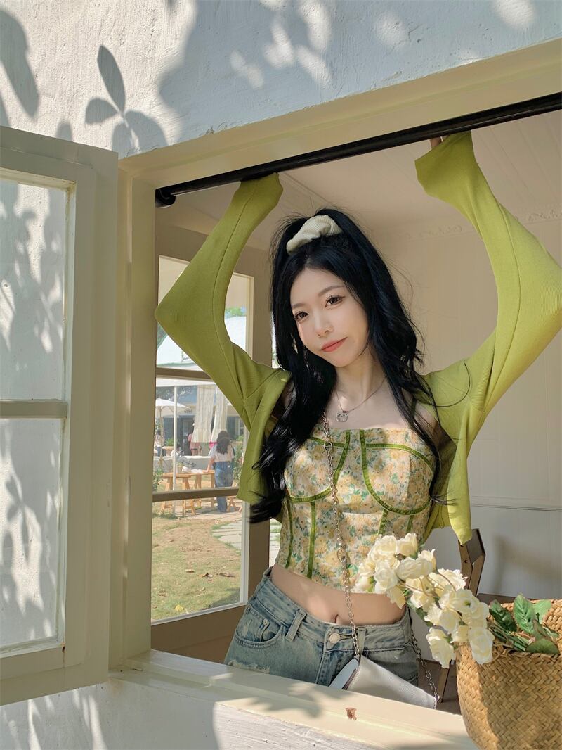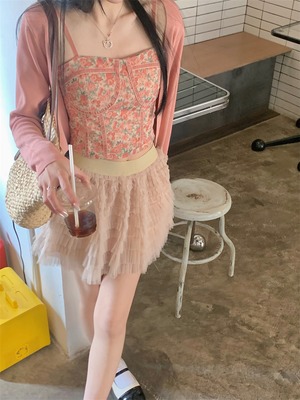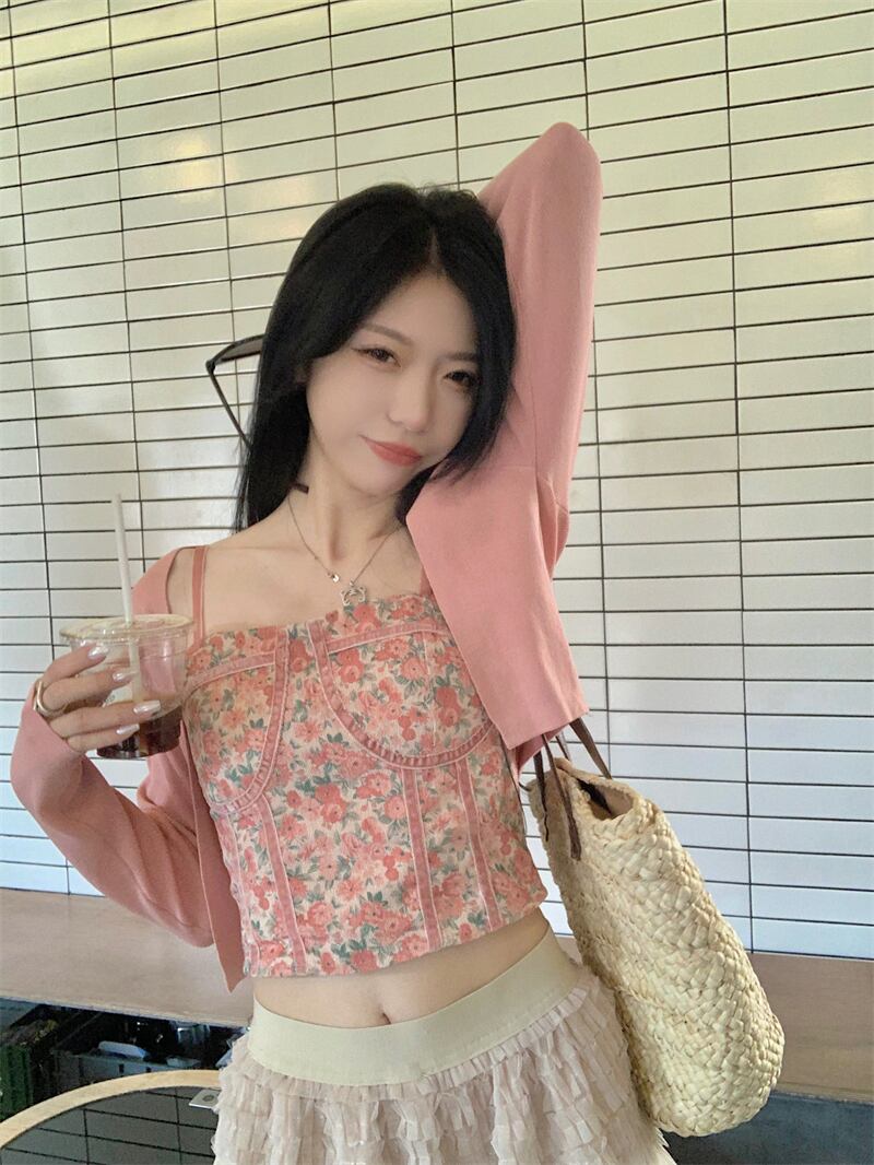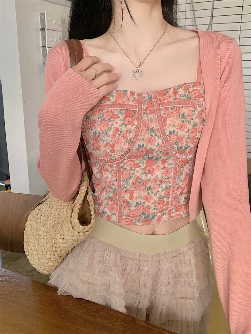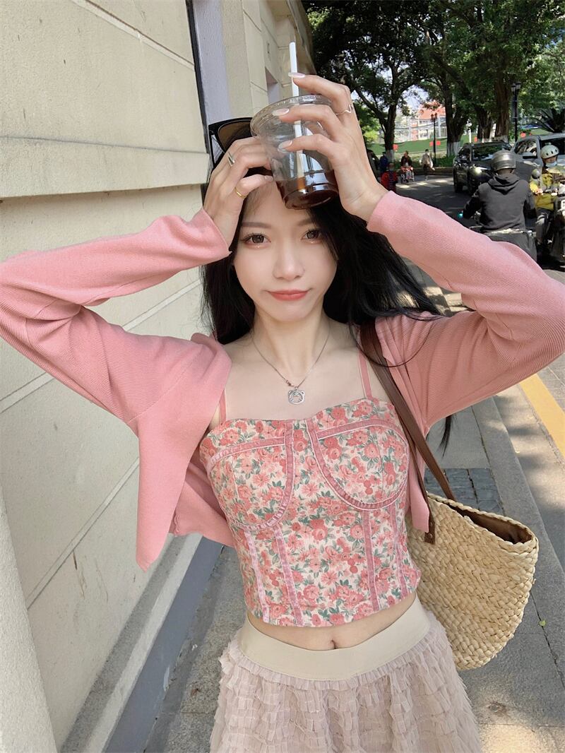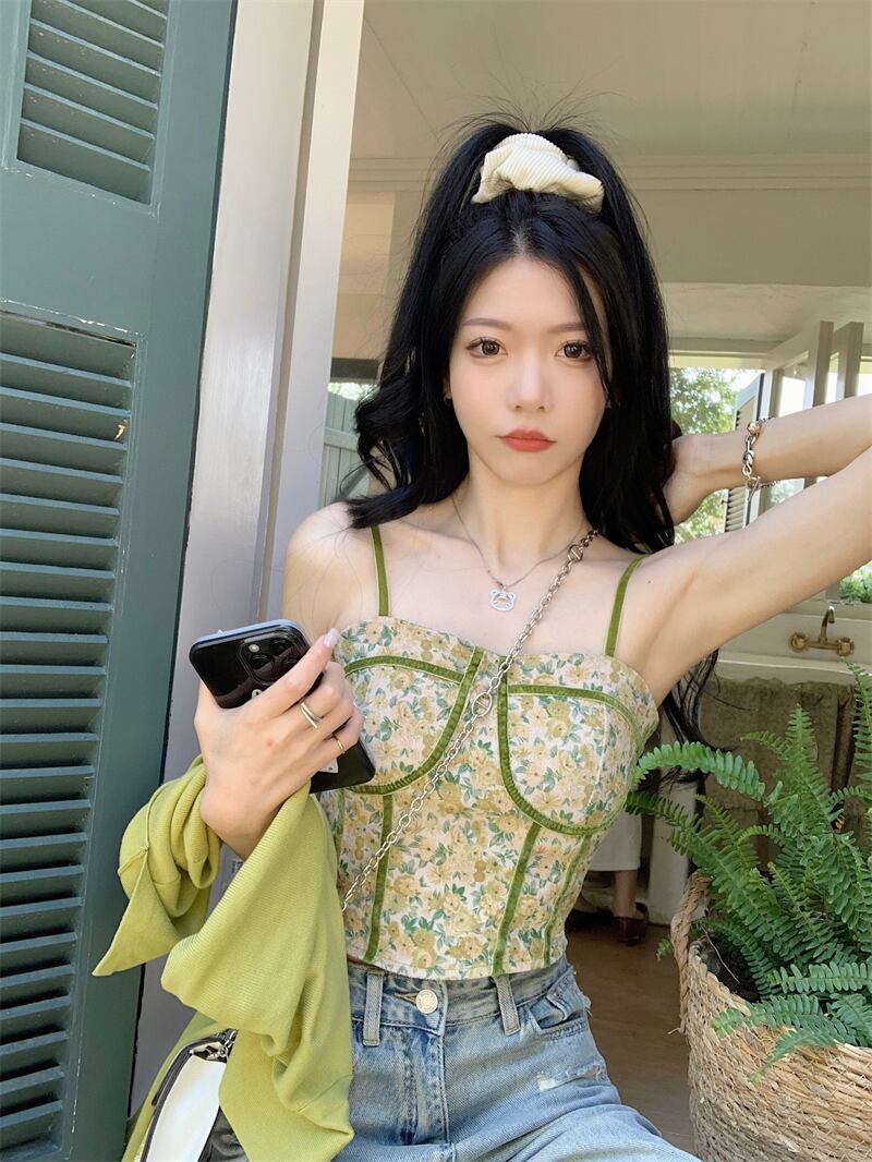 ビスチェ トップス キャミソール パイピング 花柄 フラワー ショート丈 ノースリーブ かわいい 大人可愛い シンプル カジュアル きれいめ おしゃれ お洒落 キュート 存在感 春 夏 レディース ママ 女の子 学生 通学 デート お出かけ 女子会 休日 普段使い 韓国風 オルチャン 脚長 S M L ピンク グリーン