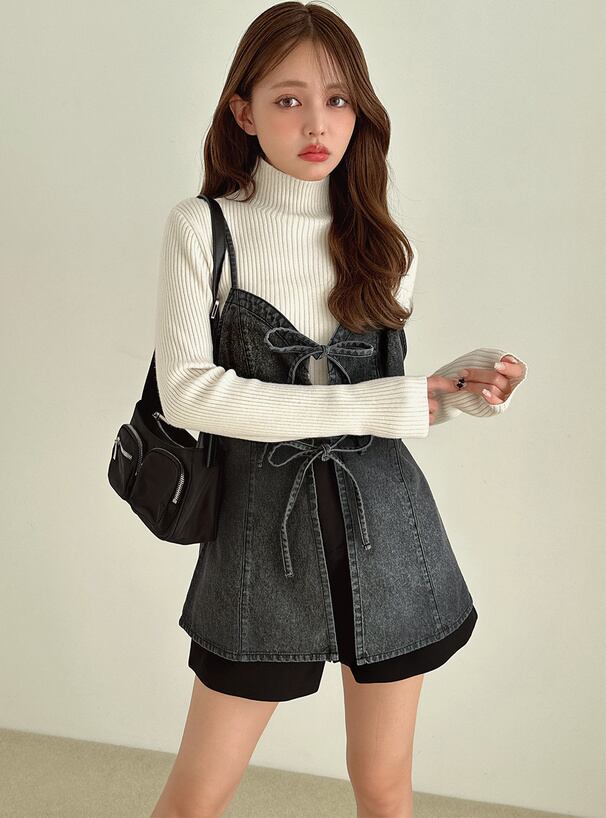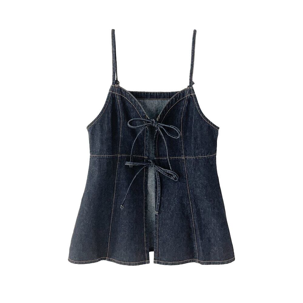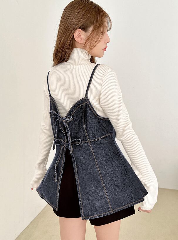裾のフレア感が可愛いリボン付きの前後2WAYデニムビスチェです。