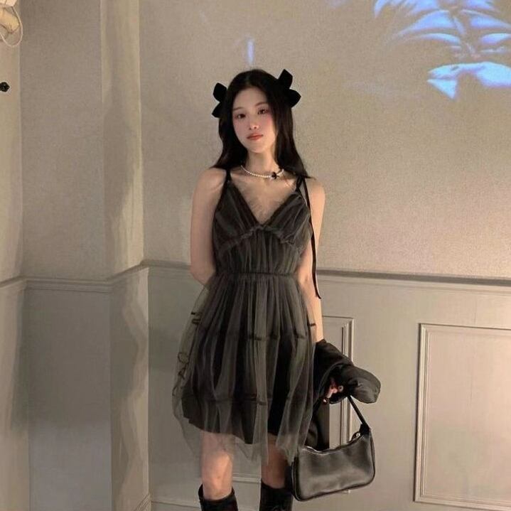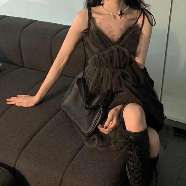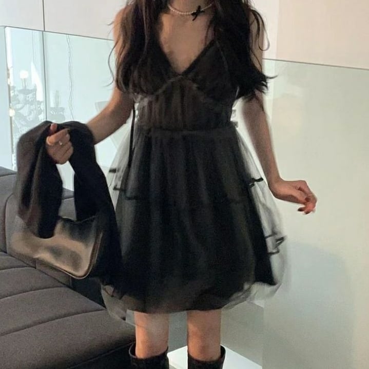 ワンピース ミモレ丈 ティアード キャミワンピ ミニ ショート丈 レイヤード 透け感 シアー リボン ラVネック チュール 透け感 シースルー かわいい 大人可愛い こなれ感 クール 無地 春 夏 秋 冬 オールシーズン シーズンレス 10代 20代 30代 40代 レディース 女性用 ママ 休日 パーティー イベント 着回し 普段使い 重ね着 コーデ インスタ映え S M L ブラック