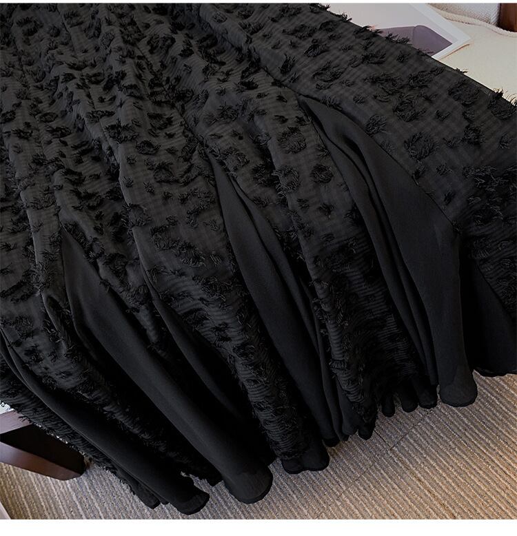 シックなモノトーンの透け感のあるフレアスカートで足元に抜け感をプラスします。