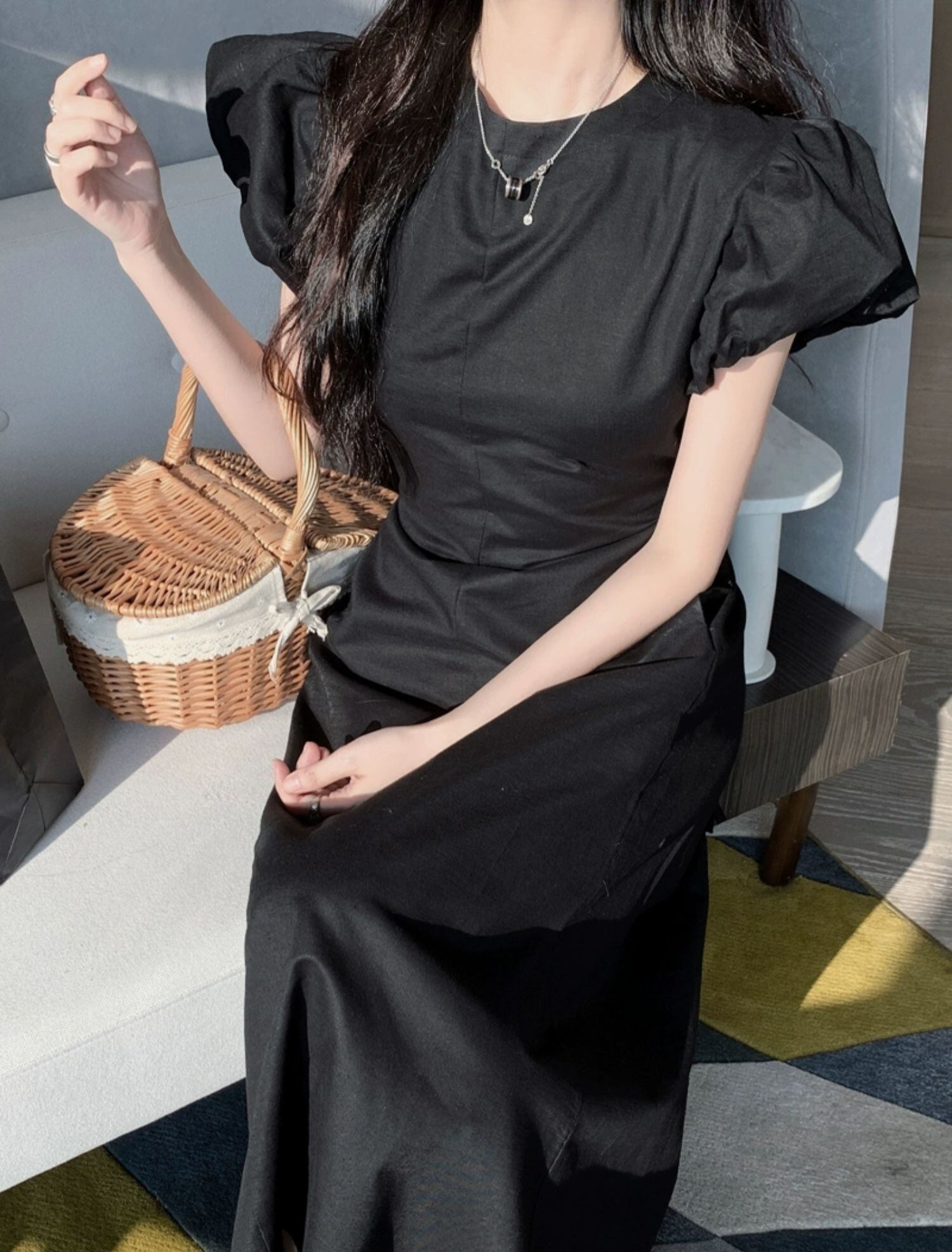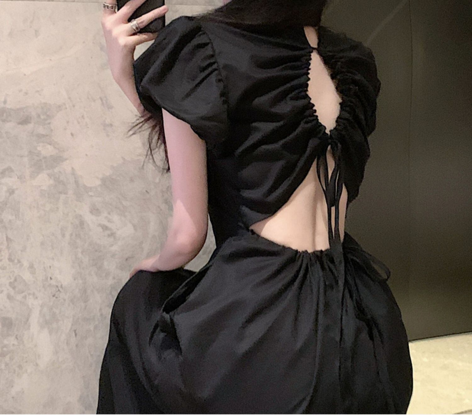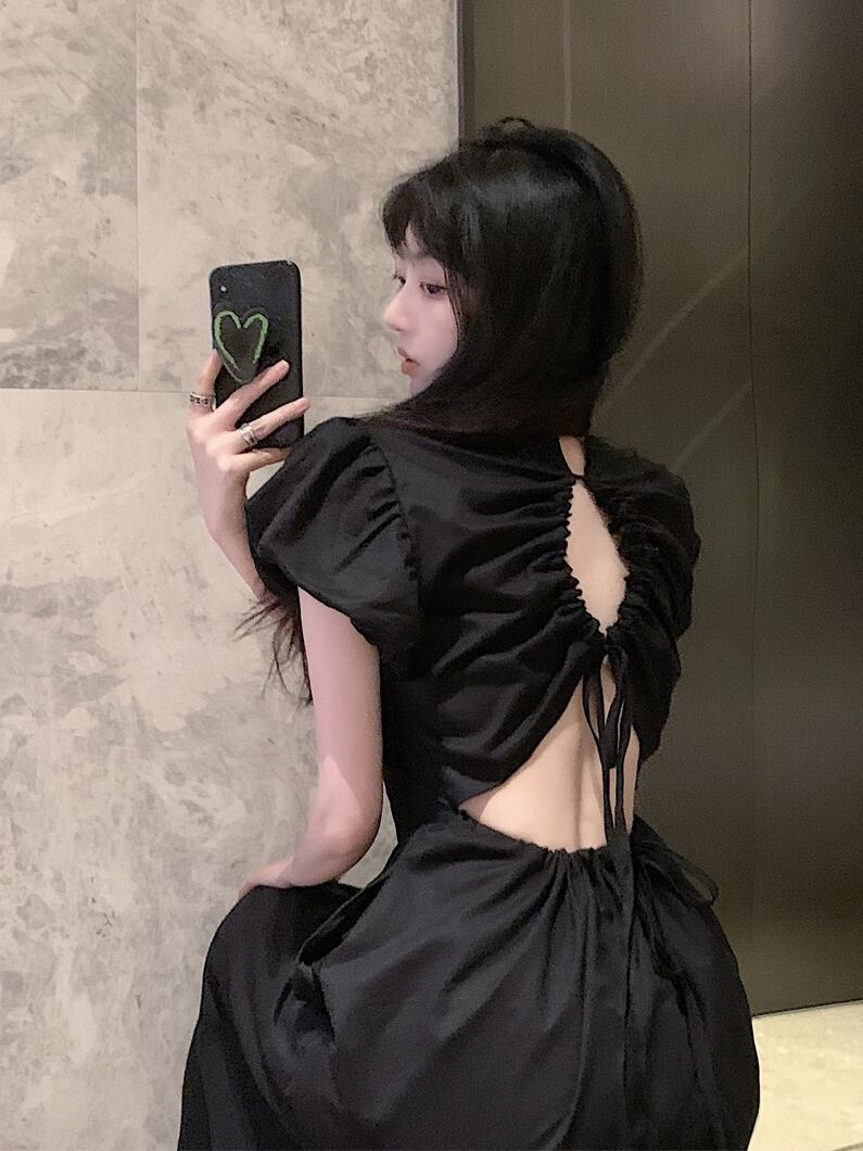 ワンピース 半袖 ドレス レトロワンピース パワーショルダー ボディコンシャス タイト バックオープン バックコンシャス リボン シャーリング ギャザー クラシカル 膝下 ミモレ丈 袖あり パフスリーブ スタンドカラー襟付き 細身 ハイウエスト 大人可愛い きれいめ シンプル カジュアル 大人 上品 お洒落 レトロ 大人女子 こなれ感 ガーリー 主役級 抜け感 無地 春 夏 秋 20代 30代 40代 ママ 学生 通学 デート お出かけ 女子会 旅行 普段使い トレンド インスタ映え ブラック S M L