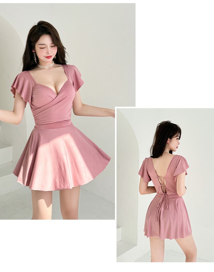 水着 オールインワン ワンピース スカート 2点セット ギャザー バックオープン レースアップ カシュクール 半袖 フレア フリル ミニスカート ハイウエスト ビキニ 体型カバー ショートパンツ 切り替え パッド付き 胸元 かわいい 大人可愛い セクシー sexy ゴージャス 華やか 大人 存在感 女っぽ 個性的 スタイリッシュ かっこいい エキゾチック アジアン 無地 20代 30代 レディース 女性用 美脚 着痩せ スタイルアップ 美スタイル 韓国系 ギフト S M L XL ピンク ブラック